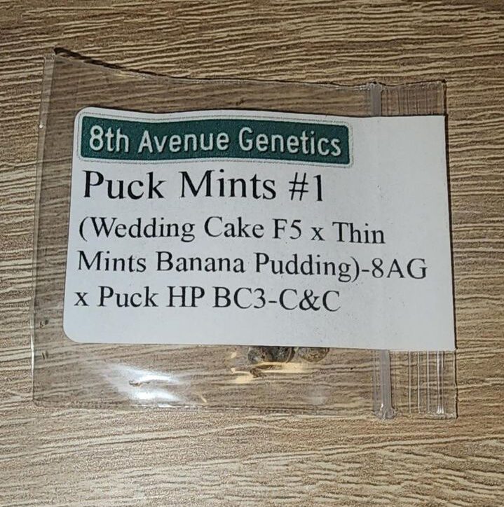 nYou are bidding on one pack of 8th Avenue Genetics Puck Mints #1 F1 [(Wedding Cake F5 x Thin Mints Banana Pudding) – 8AG x Puck HP BC3 – C&C] 12 Regular Photoperiod Seeds generously donated by our friend Dirty Worm Farms!