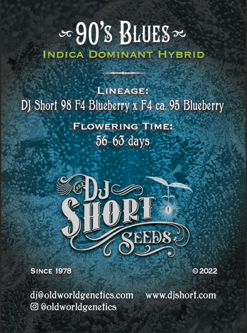 DJ Short’s latest release is a guaranteed winner! 90’s Blues is Dj’s 1998 F4 Blueberry crossed with his Blueberry F4 Circa 1995.