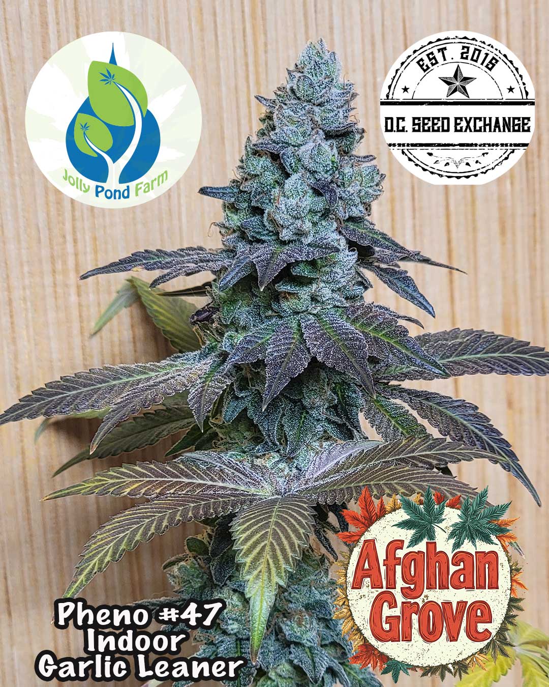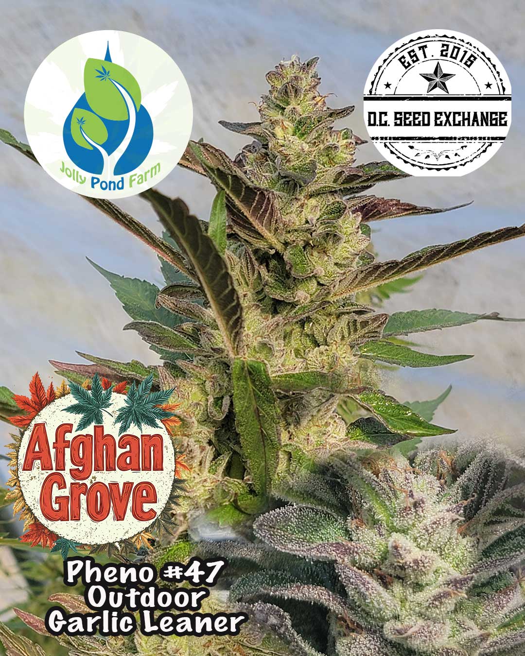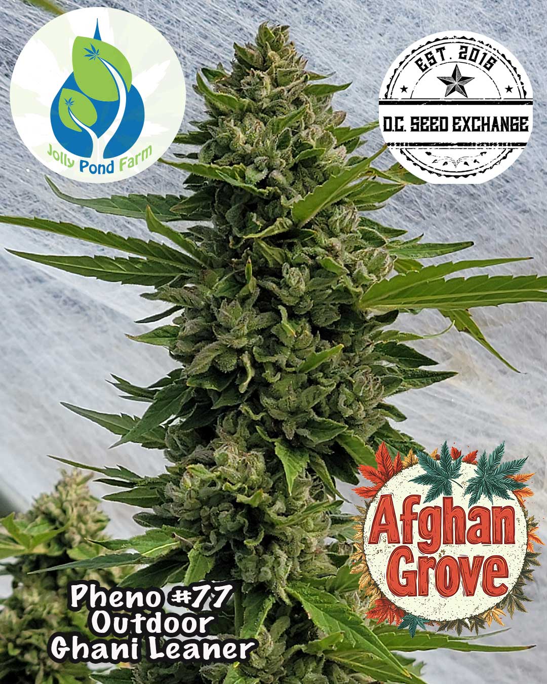 Garlic Grove went on a similar journey of growth to be truly tested and she straight crushed them all; inside, outside, deps, high humidity, just beast mode in all situations. Garlic grove was in the first fem seed run with WA 3A, we never released that seed yet we handed it off to a friend who hunted them all. That is what became Afghan Grove (Garlic Grove X White Afghani 3A). We made 3 selections from that stock, 47, 77, 79, we lost the February fire entry #47 which scored 7.2 from the judges and the posted labs are from that pheno.
