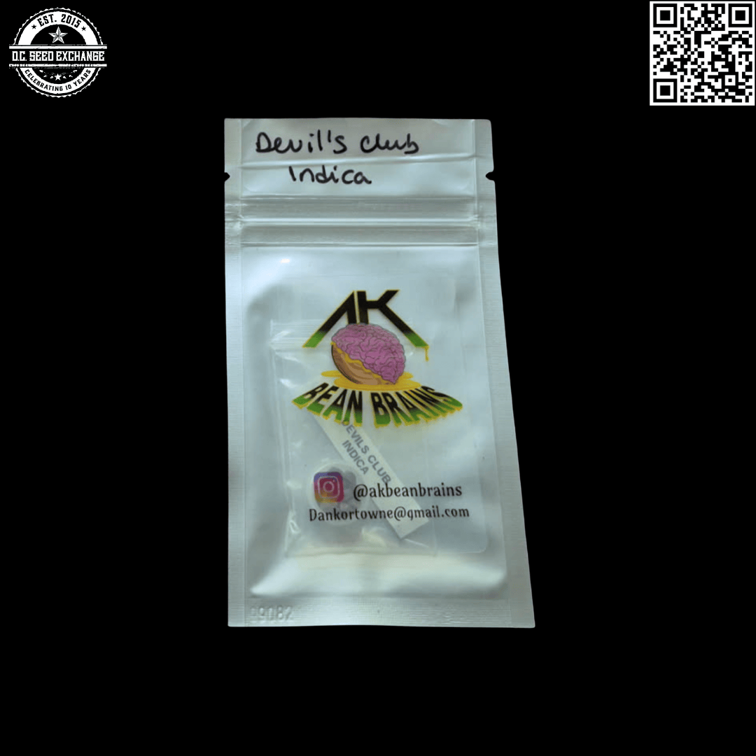You are bidding on one original, super-rare AK Bean Brains Devil’s Club Indica 12 Regular Photoperiod Seeds pack!