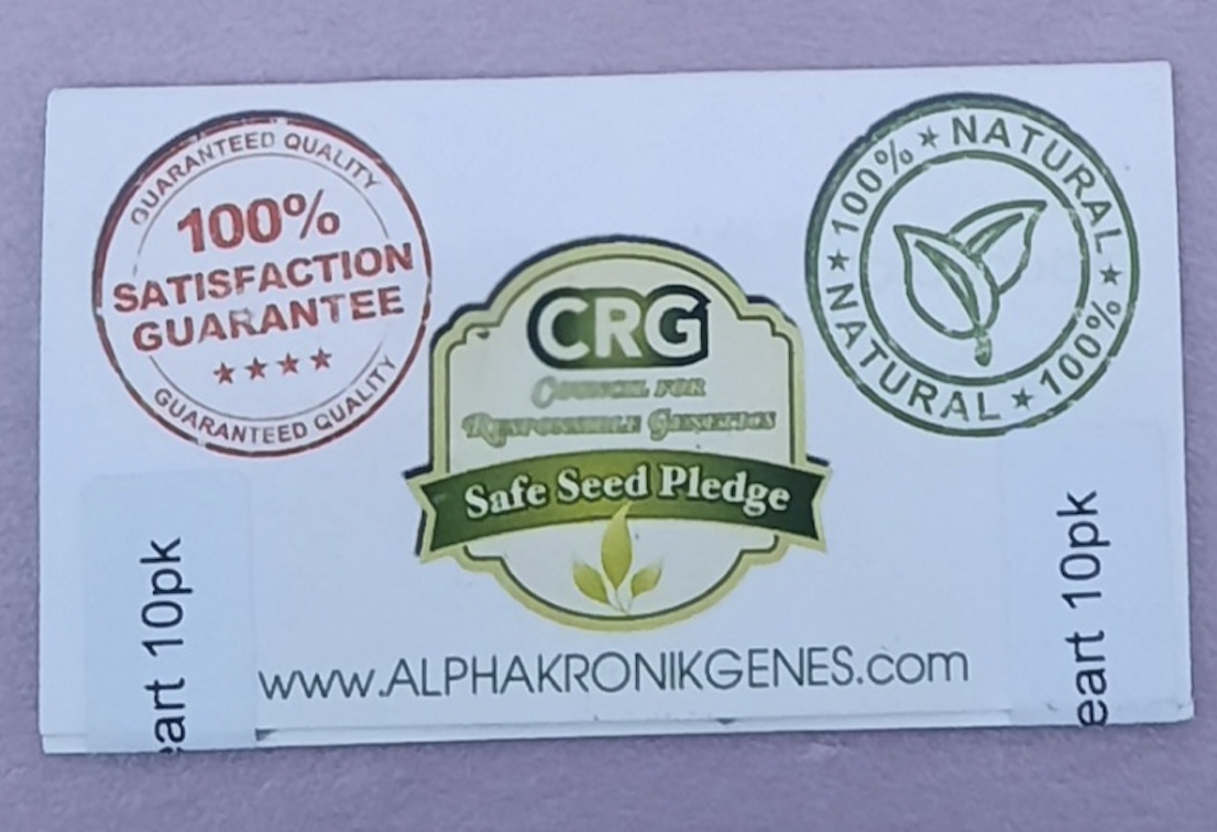 You are bidding on one pack of AlphaKronik Gene’s Purple Heart F1 10 Regular Photoperiod Seeds!