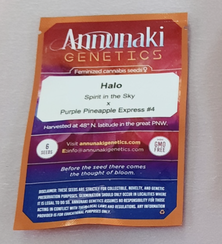 You are bidding on one rare Annunaki Genetics Halo (Spirit in the Sky x Purple Pineapple Express #4) 6 Feminized Photoperiod Seeds pack!
