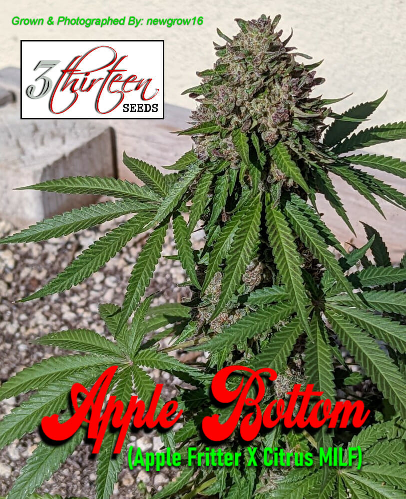 3Thirteen Seeds “Apple Bottom” is a Feminized F1 cross of Apple Fritter and HydroRed’s Citrus MILF (Mothers Milk x Plemon) rev.