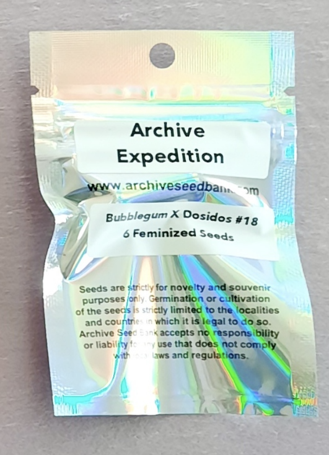 You are bidding on one rare Archive Seeds’ Archive Expedition Bubblegum x Dosidos #18 6 Feminized Photoperiod Seeds pack!