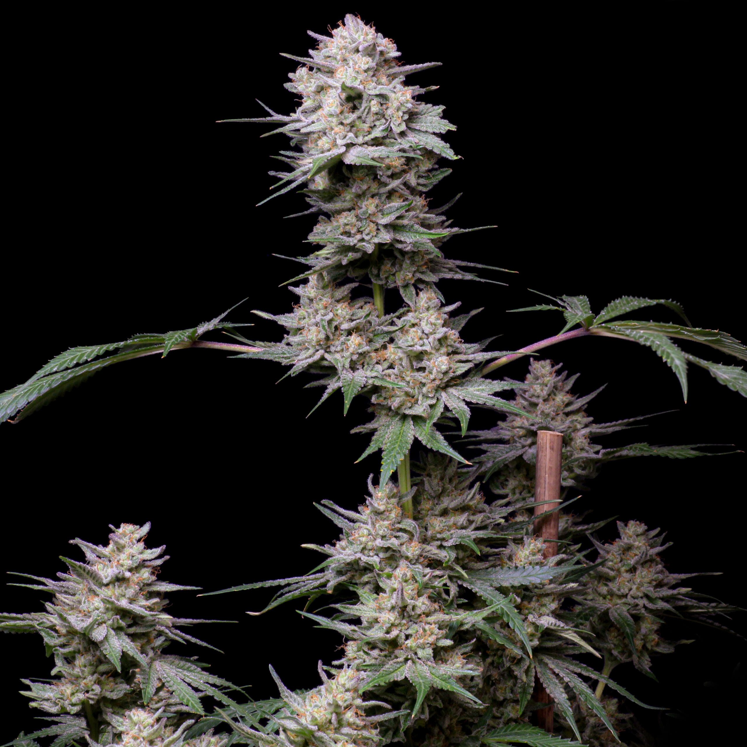 Easy to grow, easy to trim, and good yields pair well with the excellent bag appeal of this cultivar. Floral, Pine, and sweet kush flavors are what you’ll taste and smell