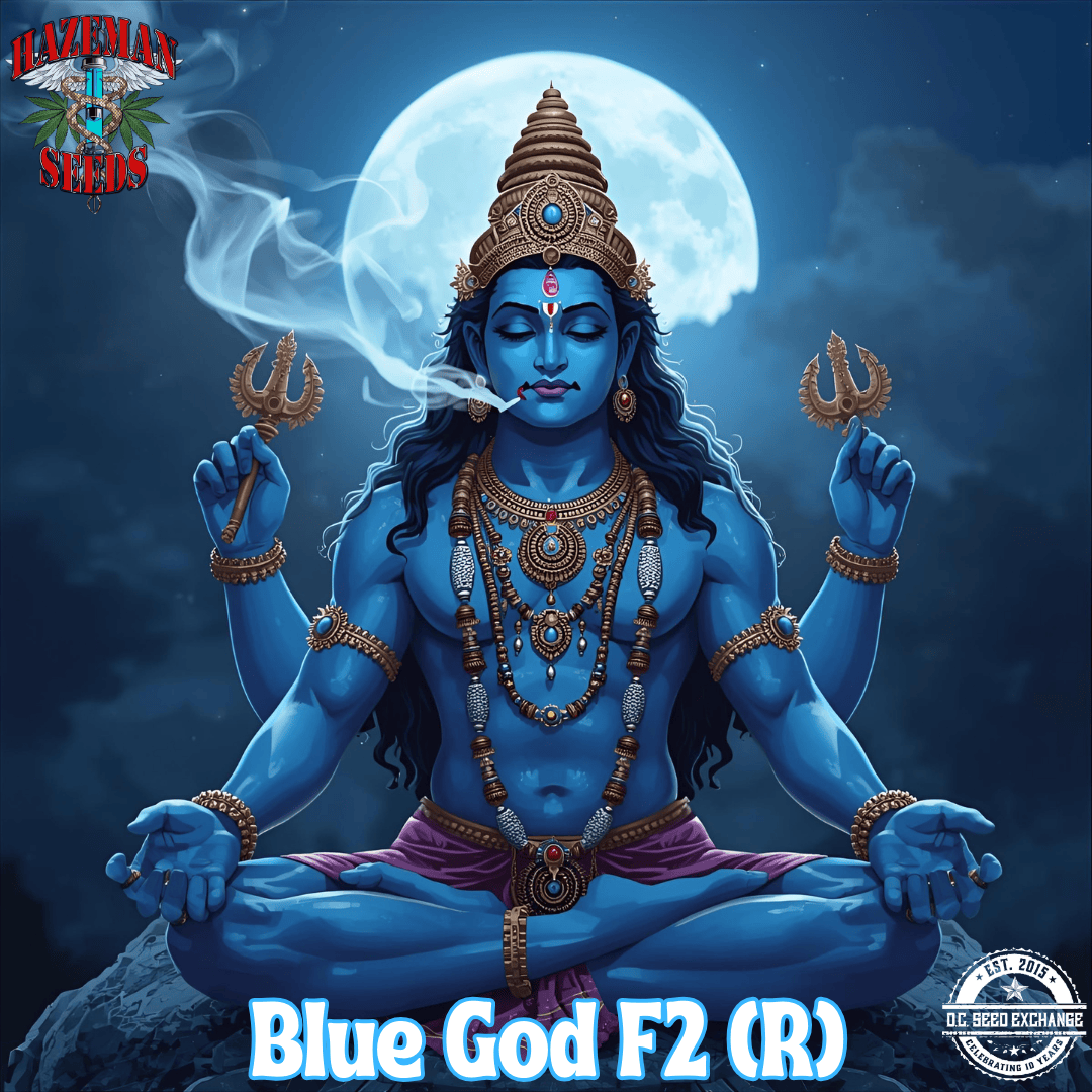 Hazeman Seeds’ Blue God is an F2 cross of Jordan of the Islands’ original Blue God (God Bud x Blueberry).