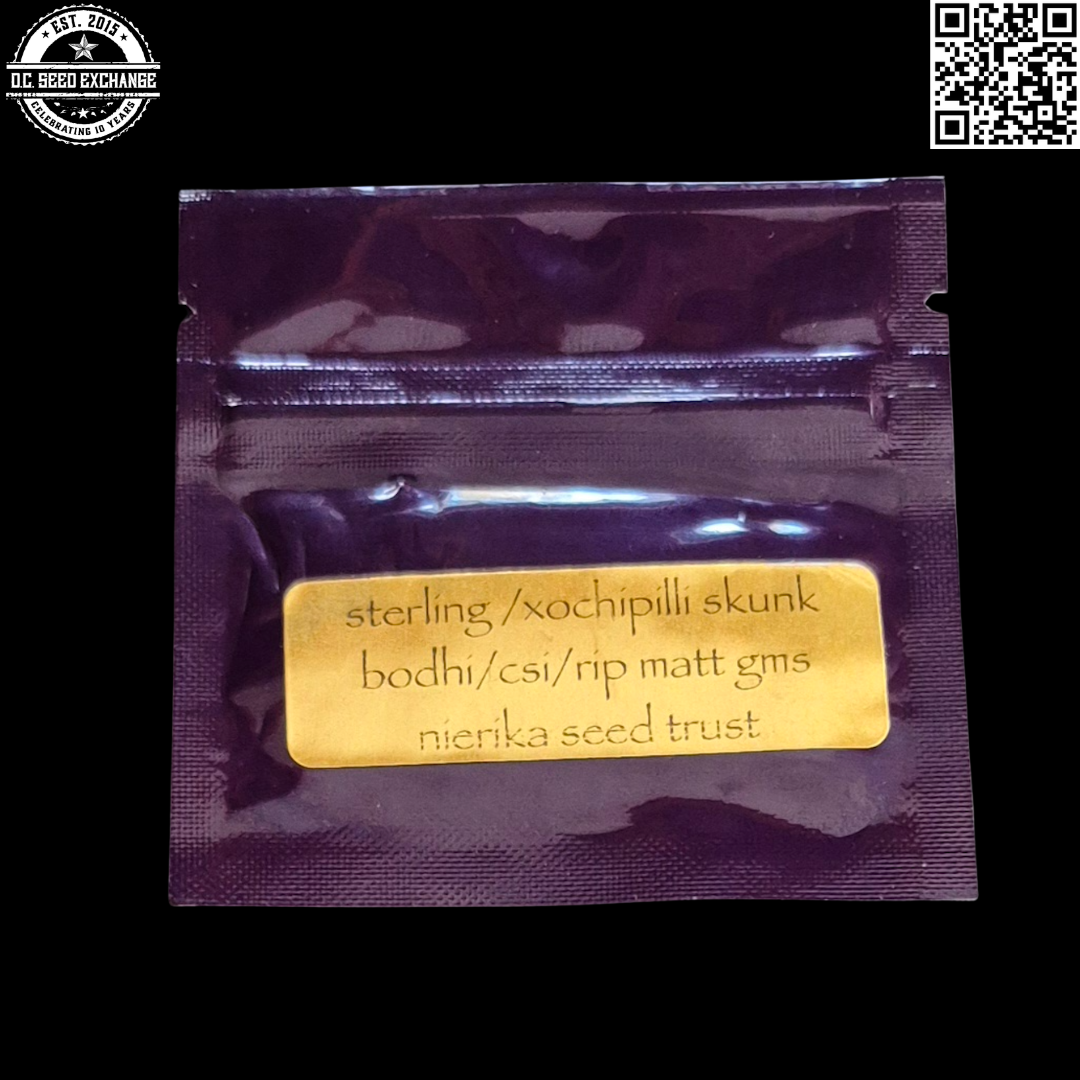nOur Sterling Skunk strain, also known as Xochipilli Skunk, is a legendary “Roadkill Skunk” (RKS) leaning line that Bodhi brought into the Nierika Seed Trust for preservation and wider release.