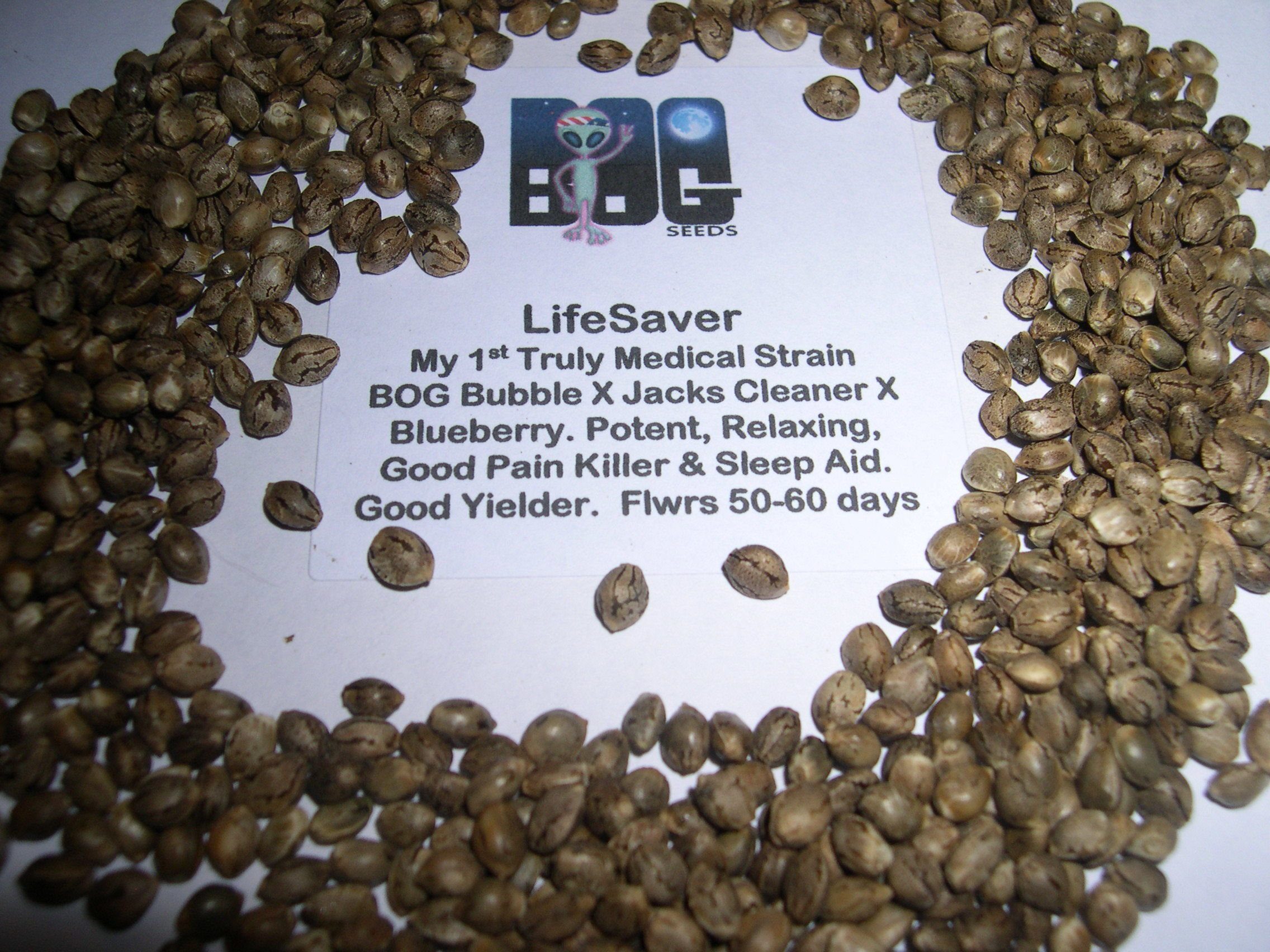 You are bidding on one rare original BOG Seeds’ LifeSaver (BOG Bubble x Jack’s Cleaner x Blueberry) 12 Regular Photoperiod Seeds pack!