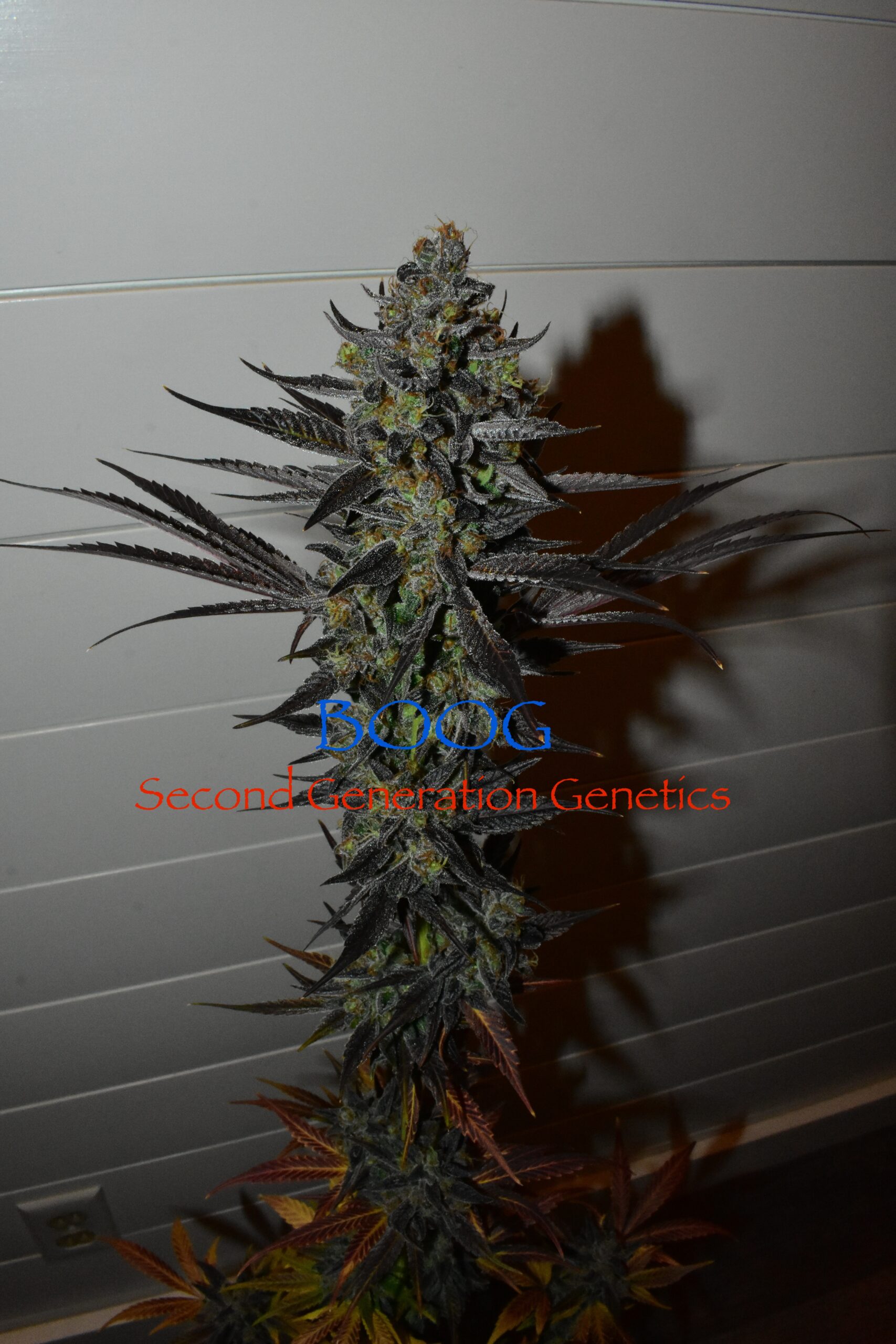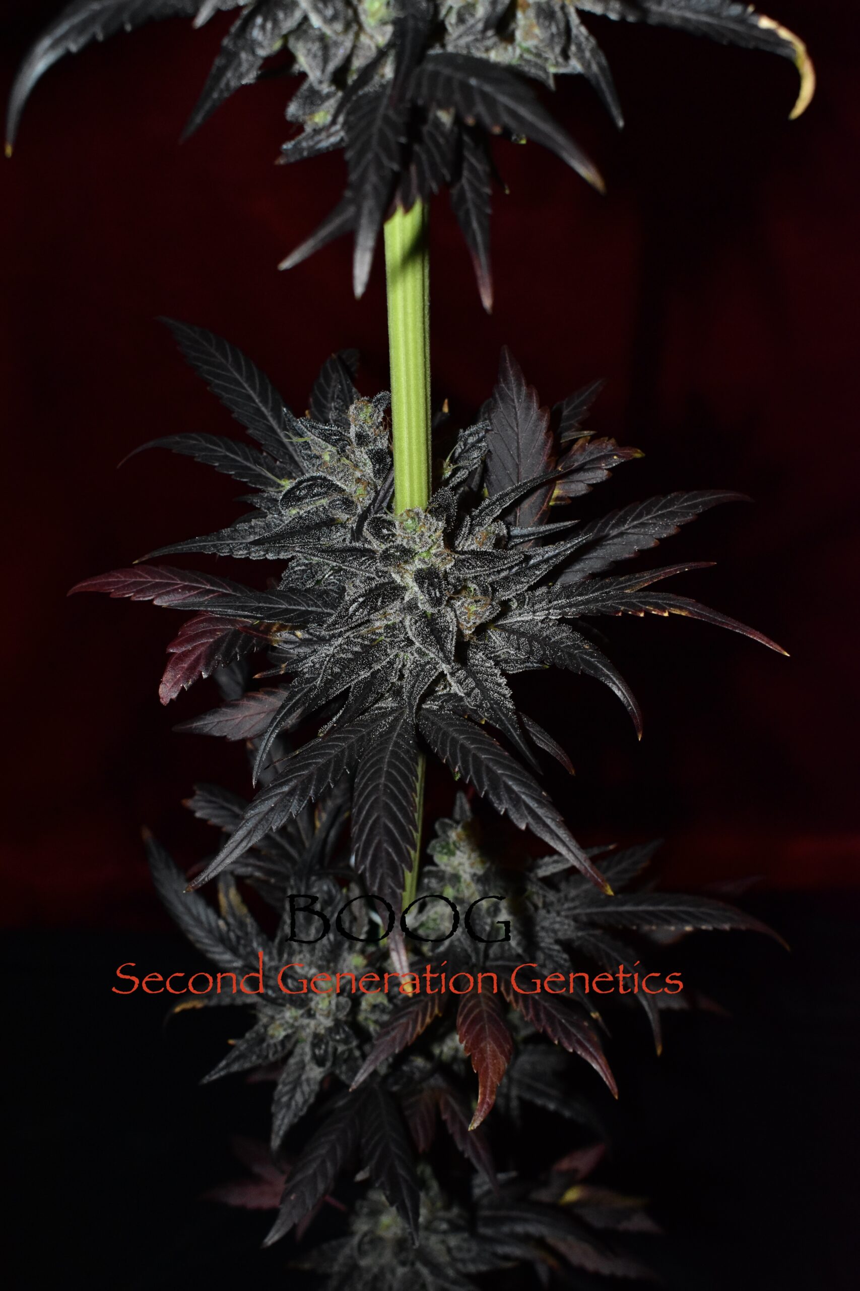 Second Generation Genetics is proud to introduce BOOG (Blue Onyx OG), a captivating F1 sativa/indica hybrid. This limited-edition strain boasts a unique lineage, combining Dosidos (mother) with DJ Short Cocoa Kush (father).