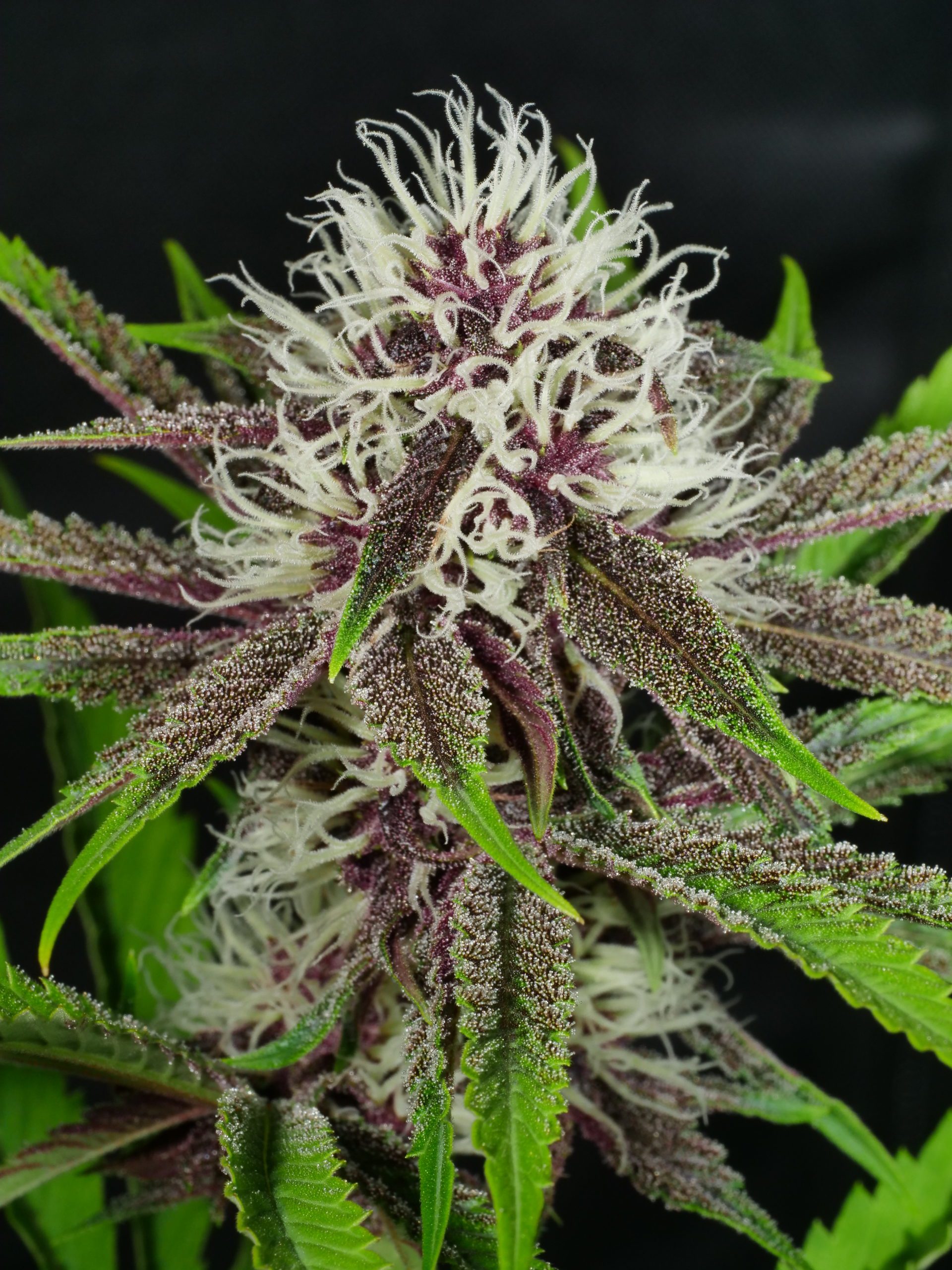 Boston Cream Pie is our latest masterpiece combination of some very unique genetics. We combined our award winning PuTang strain (Tangie x Star Pupil) with a very special sativa dominant phenotype of CSI Humboldt’s “Mendocino Menage a Trois” strain which is a cross of Traingle Kush and Mendocino Purple. Our selection was based on stability, vigor, and most importantly an incredibly positive unique vibe and mouth watering terpene profile which gives it her name. The effects on this cross are very potent, both heavy and intense, powerful hybrid feel with an uplifted intense mind, and a strong body buzz which can be very relaxing. These plants show an array of colors from purple flowered phenotypes to green flowers with colorful leaf fades all over. Aromas of vanilla, floral, citrus orange, pupil tones, og and cream, all combined in a powerfully delicious manner. Super sparkly and gooey buds loaded in resin! Very vigorous, tall and lanky plants which don’t need a long veg time, and will flower quickly in 8 weeks with larger yield than either parent alone, displaying fantastic hybrid vigor! A true delight to grow and smoke. Limited edition!