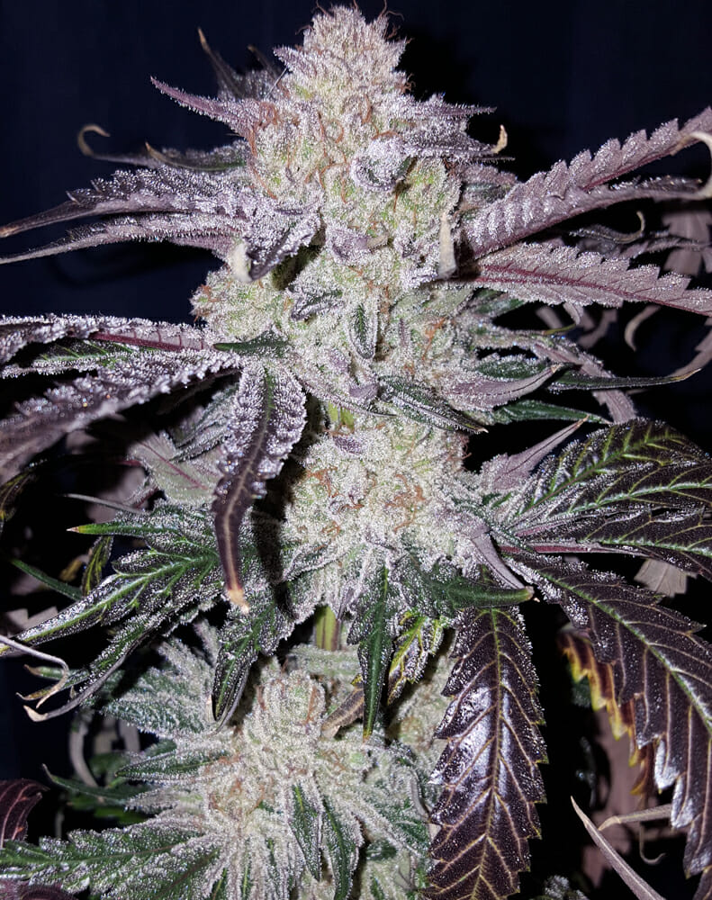 Overall expect huge outdoor Christmas tree-shaped plants from seed and rounded-out hedges from clone. The resin from the mom combined with the dankness from the dad(s) should produce copious amounts of trichrome-laden spears. We created this strain to kick ass outdoors in New England with finish times from mid-September to mid-October. Crazy Bitch is very tolerant to cold and extremely mold and mildew resistant and bugs don’t bother her outdoors at all. For outdoors you want the lanky, extremely vigorous phenos for maximum yields. The Compost Mamma has been around for 2-3 years and we have seen zero intersex traits to date. The Black Domina we have run inside and out and have never seen any intersex traits ever.