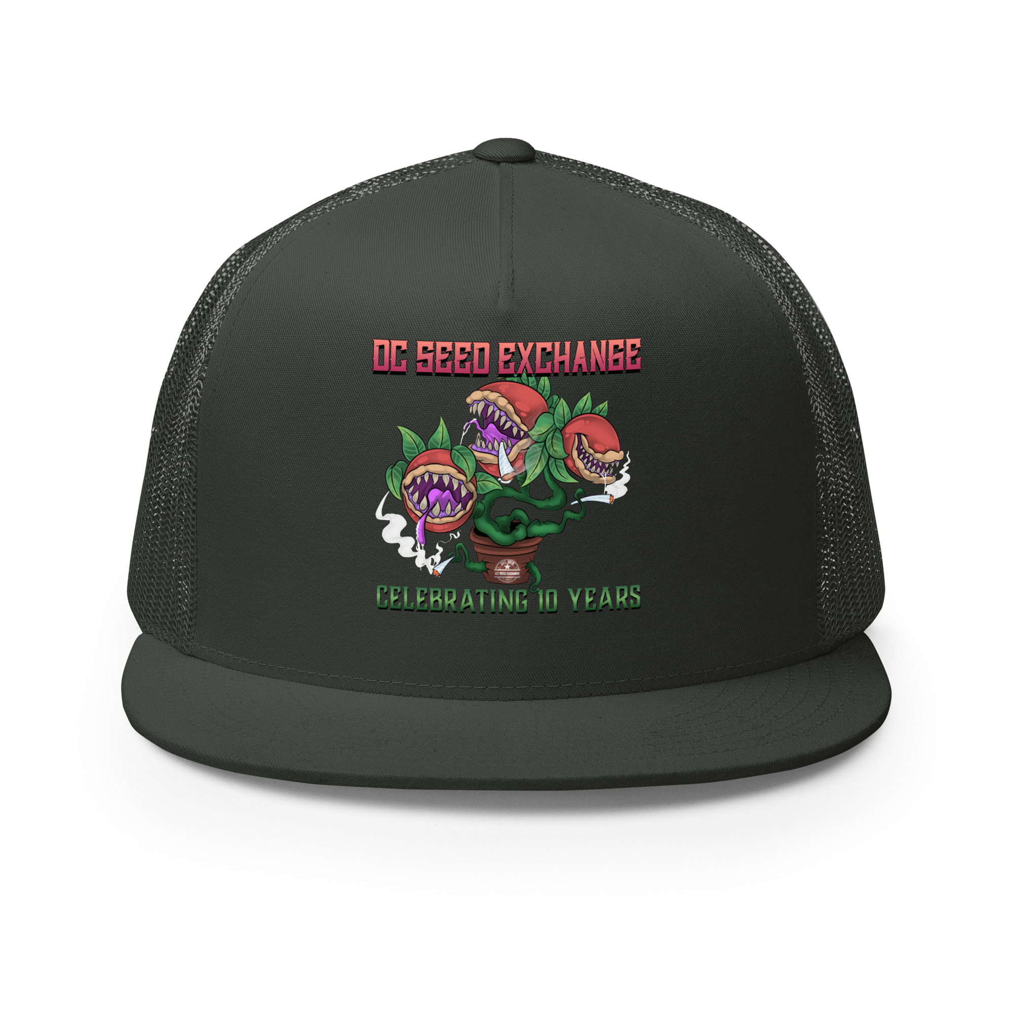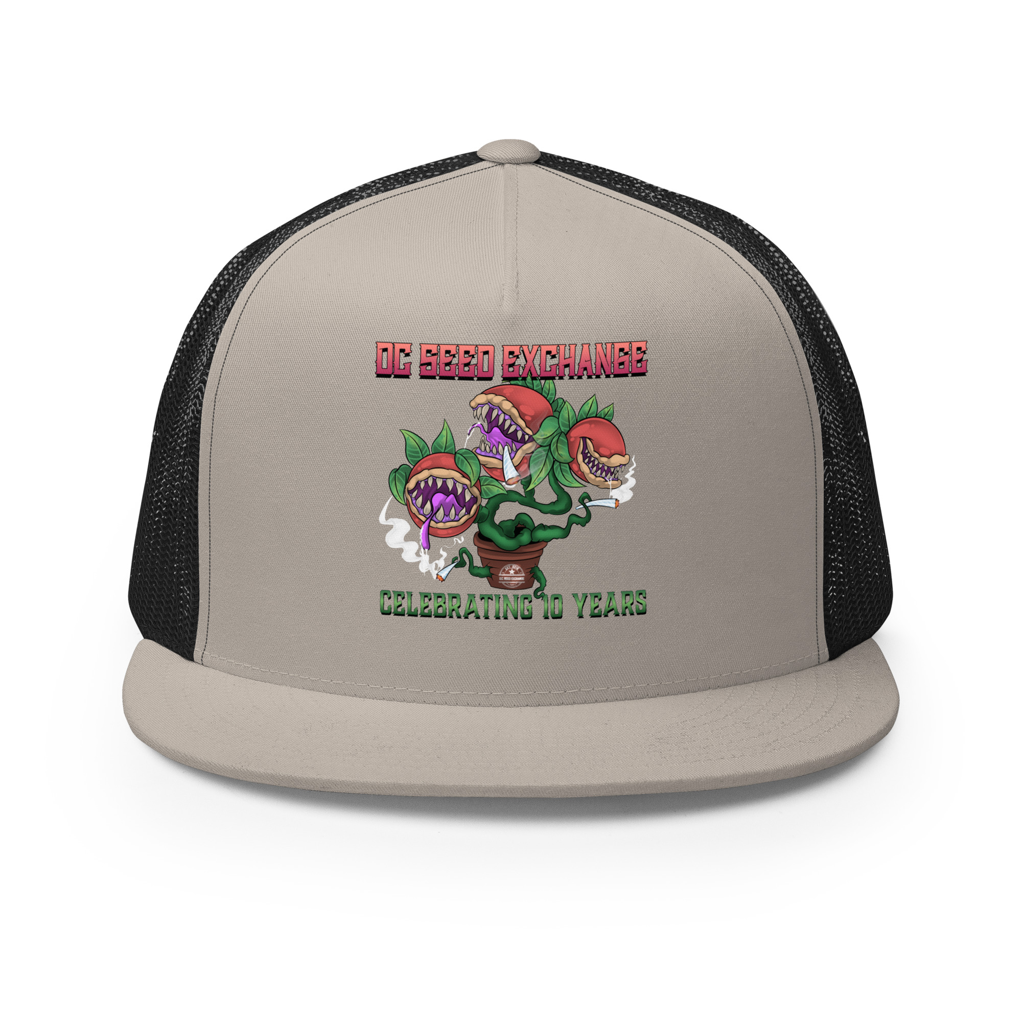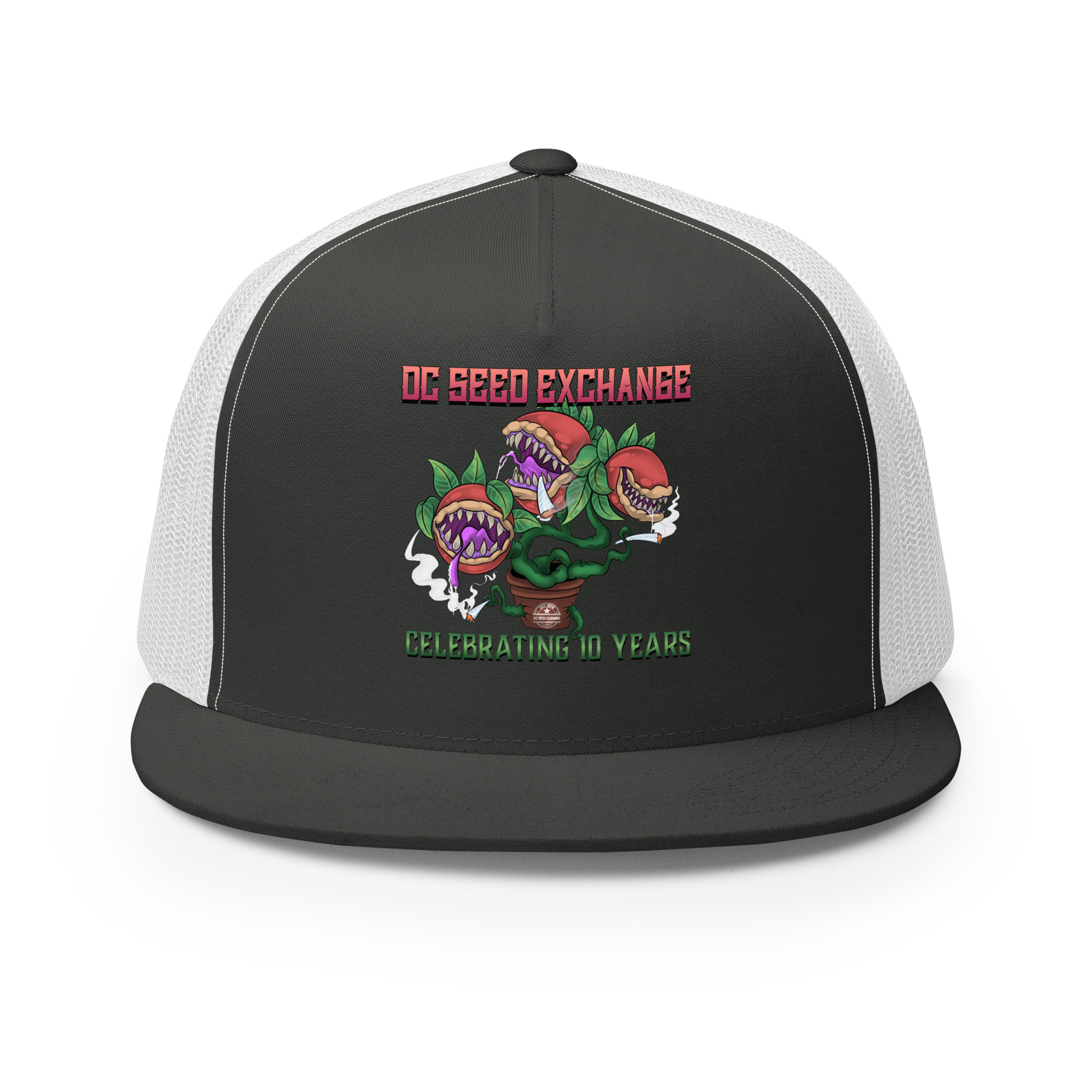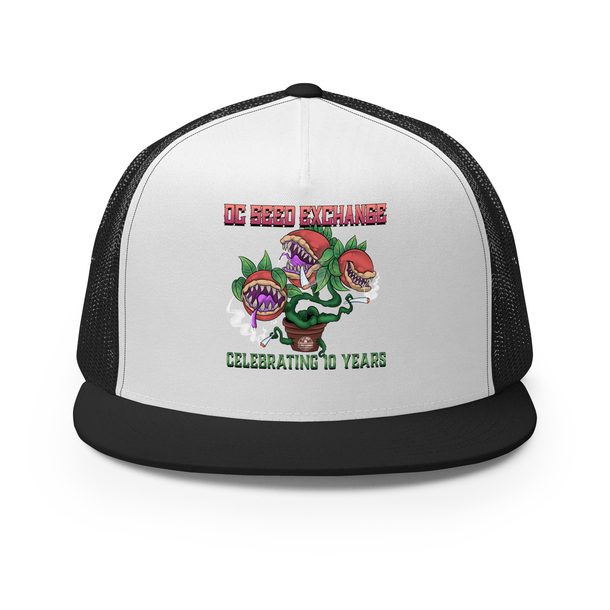 Celebrate a decade of growth with our limited edition “Audrey” Trucker Cap! Inspired by the famous plant from Little Shop of Horrors, this cap is a unique piece of D.C. Seed Exchange history.