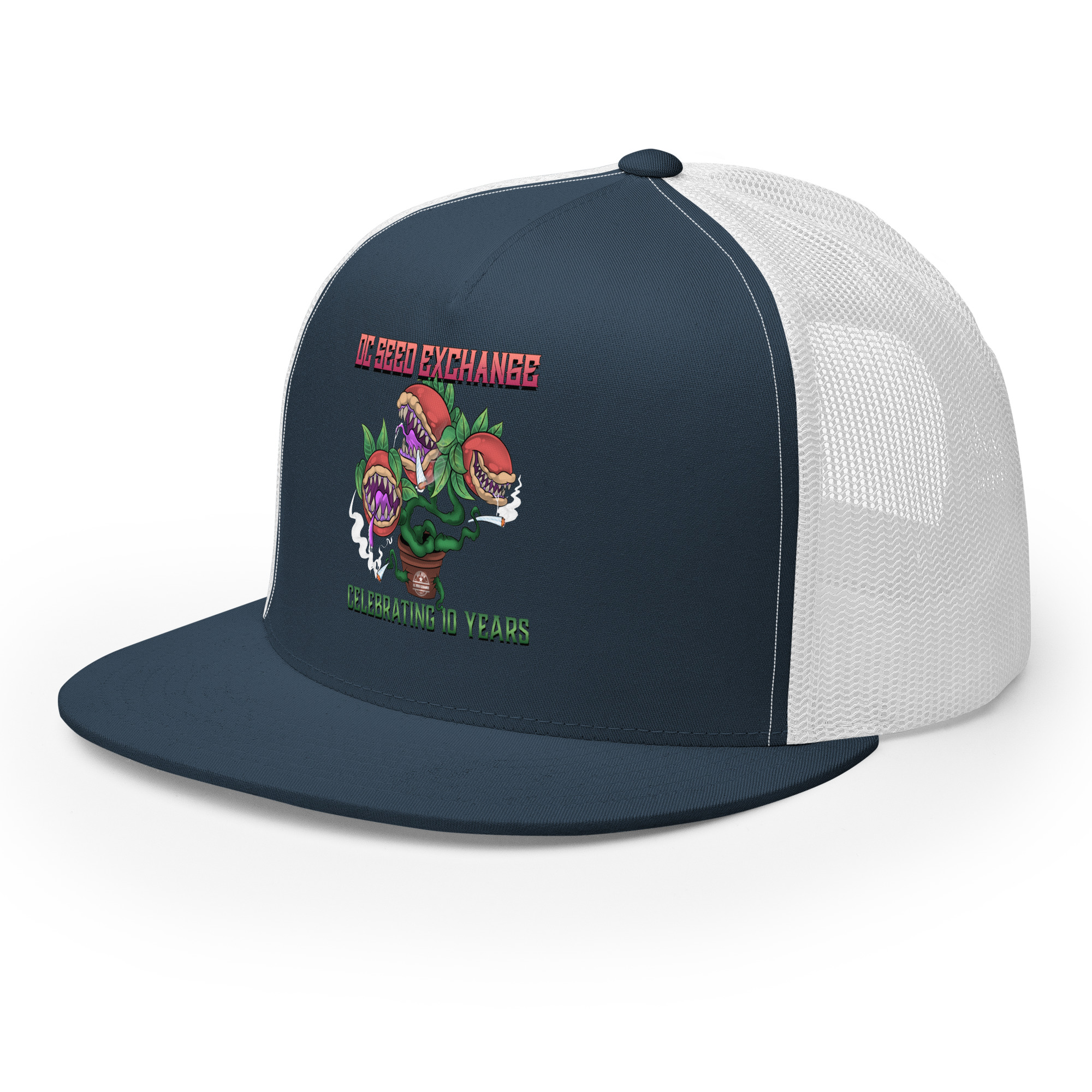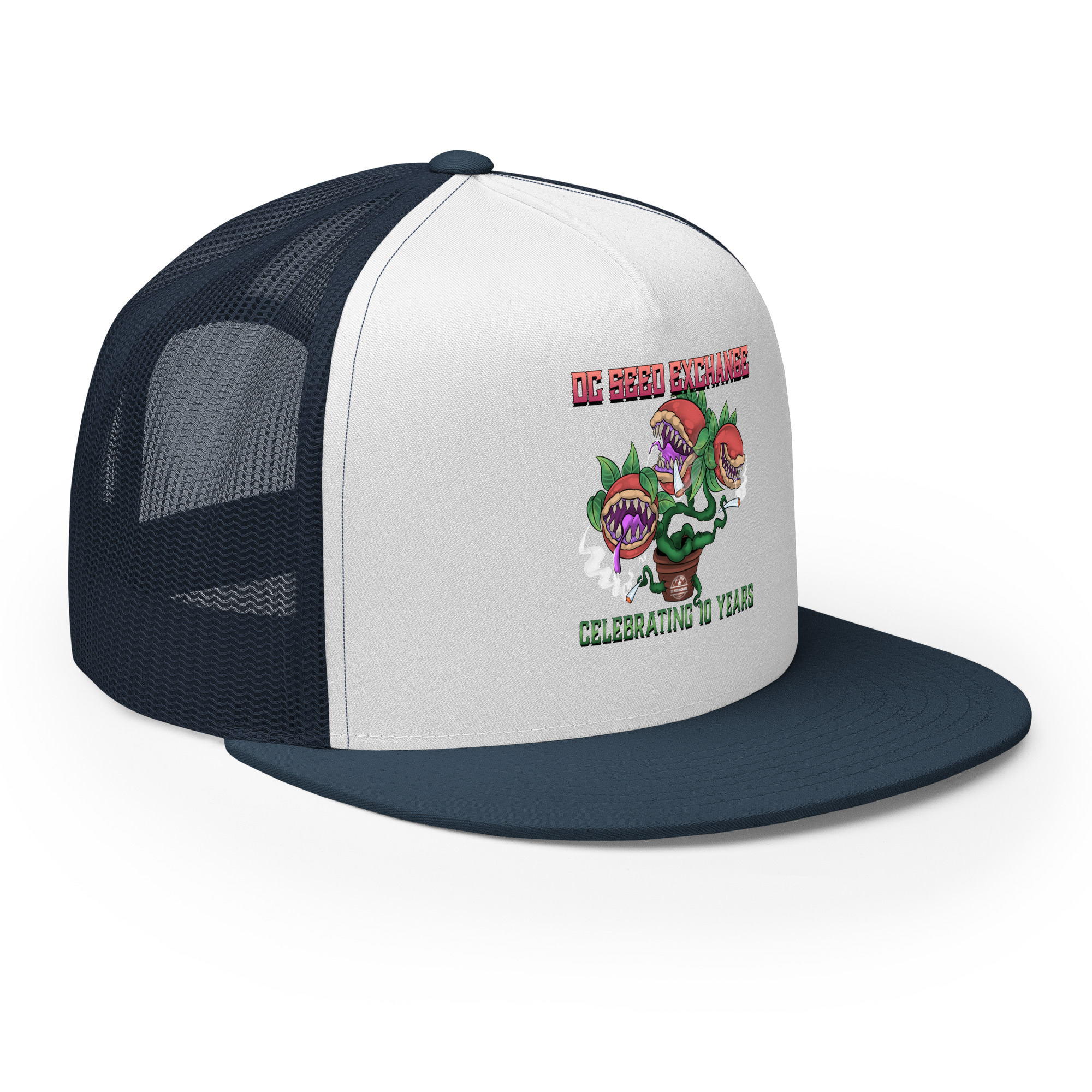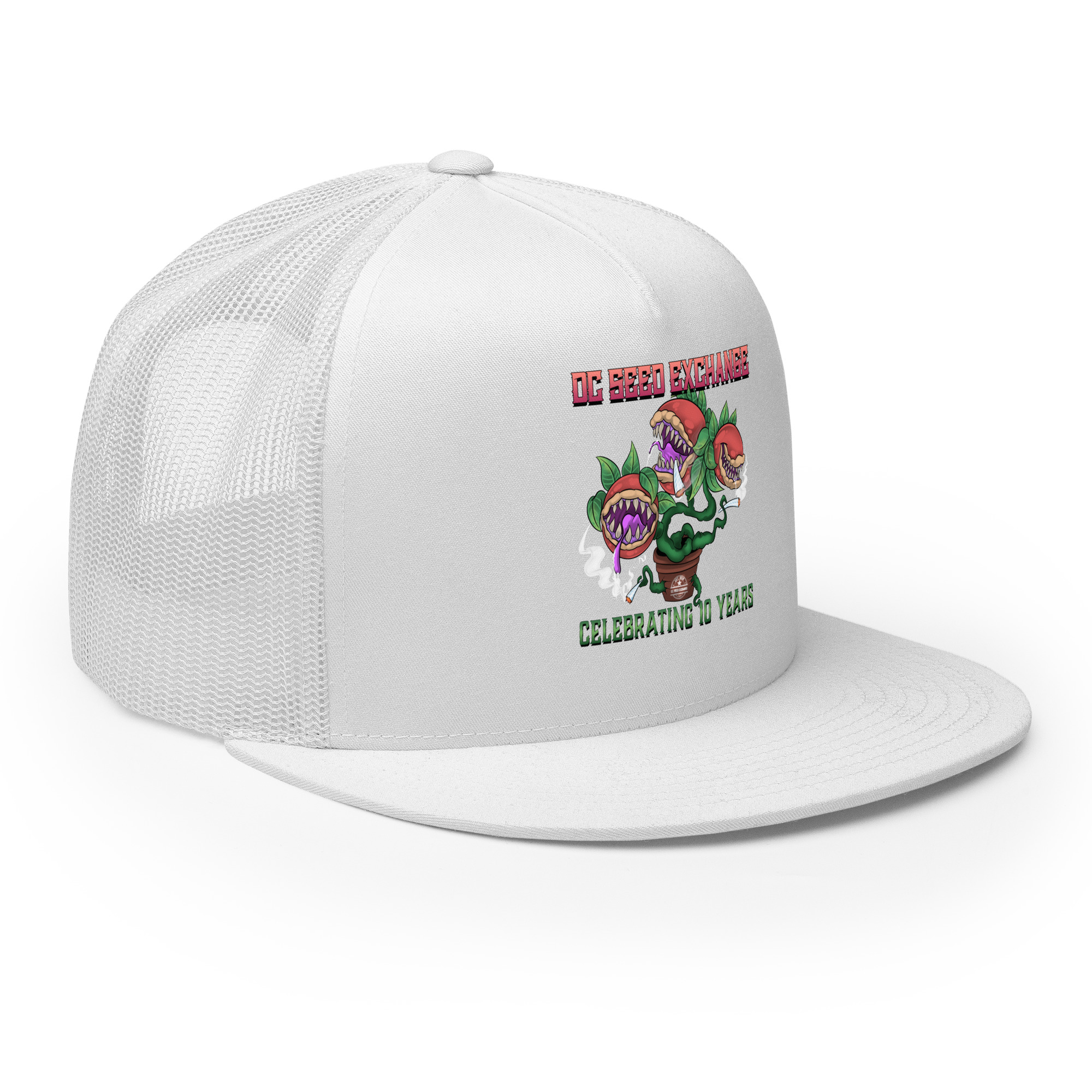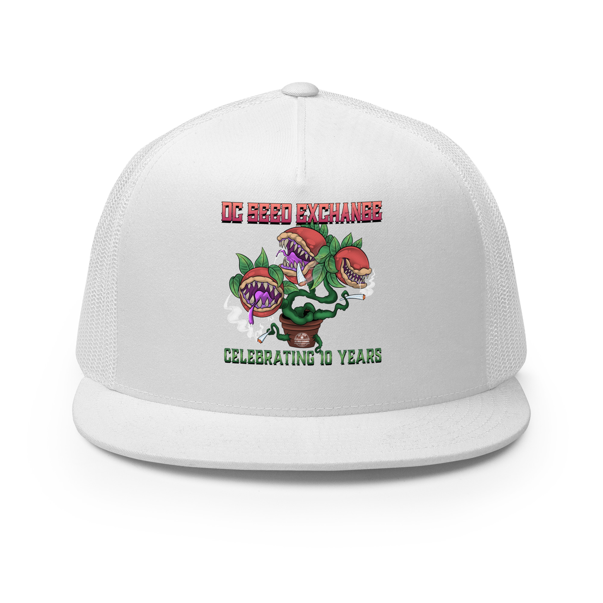 Celebrate a decade of growth with our limited edition “Audrey” Trucker Cap! Inspired by the famous plant from Little Shop of Horrors, this cap is a unique piece of D.C. Seed Exchange history.