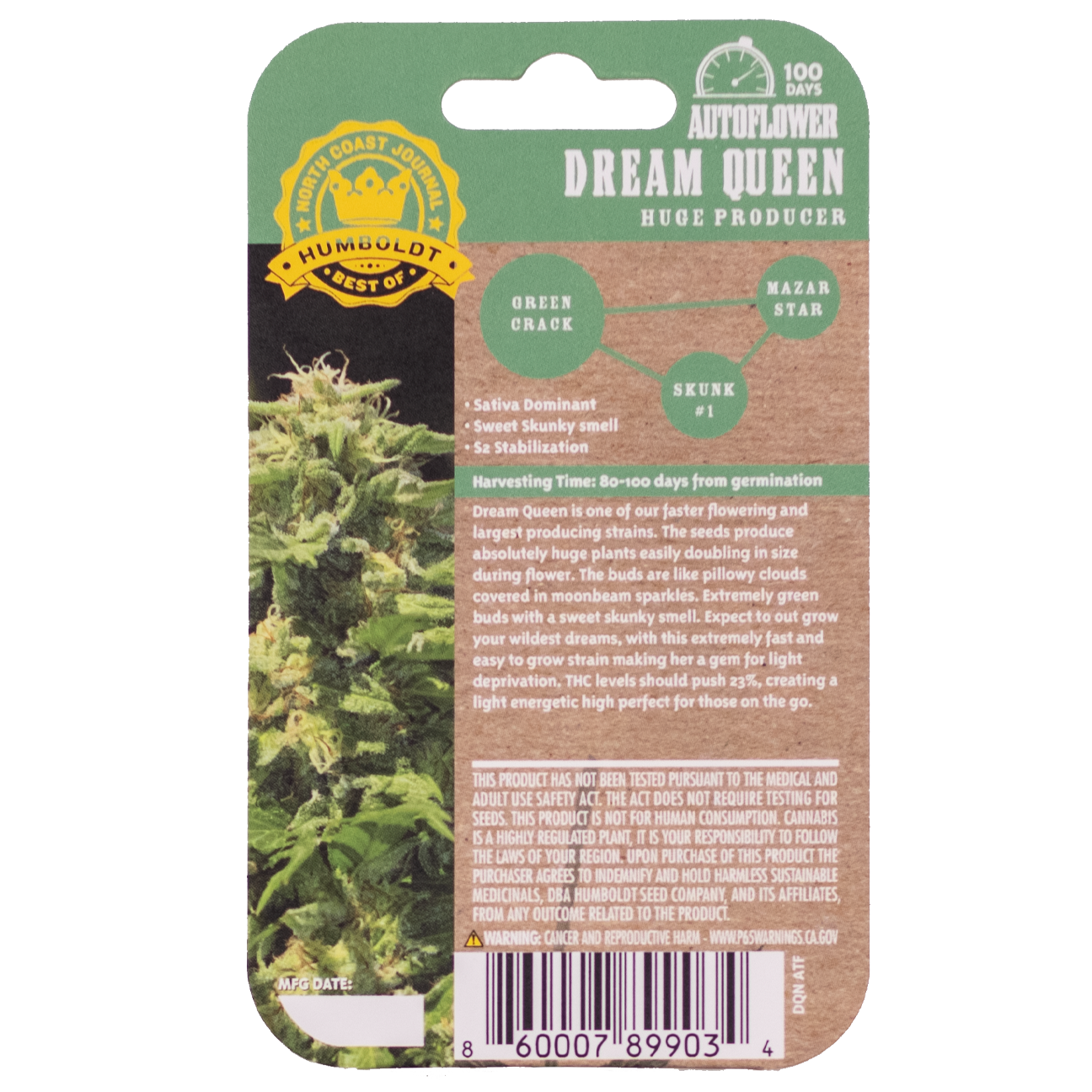 One of the fastest flowering and largest producers of our collection. Huge plants, easily doubling in size during flower. The extremely green buds are like pillowy clouds covered in moonbeam sparkles, with a sweet skunky smell. Outgrow your wildest dreams with this extremely fast and easy-to-grow strain; a gem for light deprivation. A light energetic high perfect for those on the go.