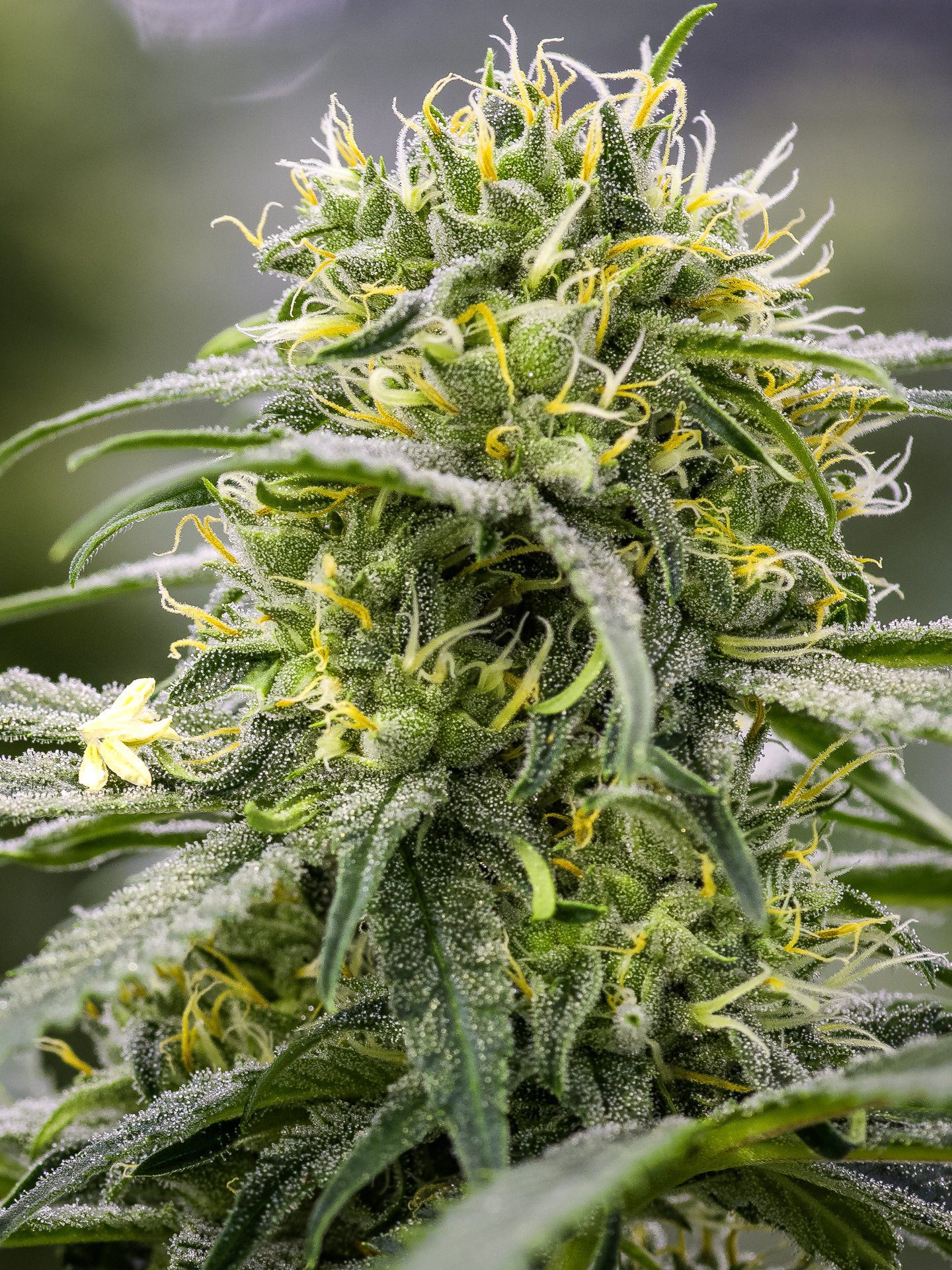 DTC99XX grows quite bushy yet her strong branches support a multitude of fat, dense buds with a sickly sweet perfume on resin-encrusted calyxes that continue to bulge through flowering, forming a baseball bat shaped cola.