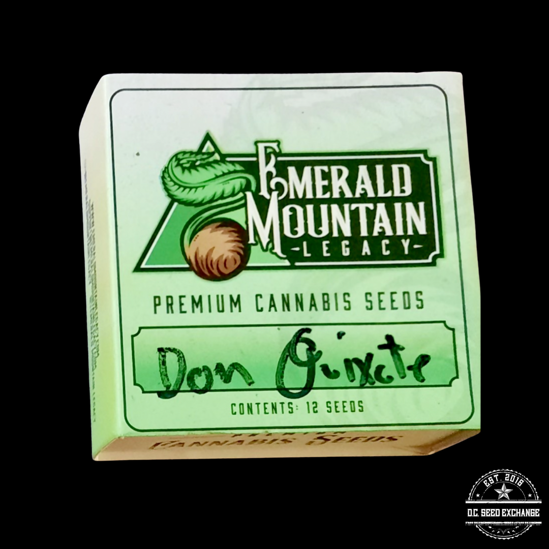 You are bidding on one rare Emerald Mountain Legacy Don Quixote F1 (Chile Verde x Royal Kush) 12 Regular Photoperiod Seeds pack!