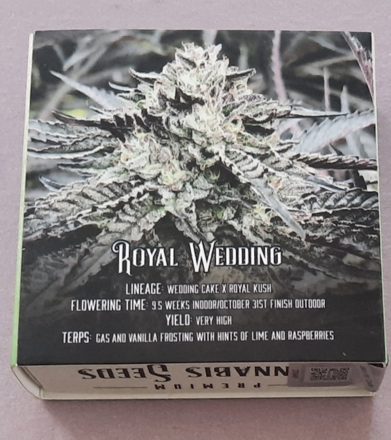 nSimply put, Royal Wedding (Wedding Cake x Royal Kush F3) is fit for a queen, and Emerald Mountain Legacy is very proud of it! This strains strikes the perfect balance of potent gasoline, skunk, honeysuckle perfume and astringent grape on the finish.