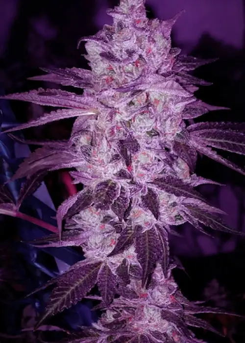 nMedium-sized, purple, spongy flowers are coated in extra terpy trichomes in Purple Roze F-1. Rich, sweet, and floral aromas are unmistakable, as are the vibrant, varied colors found in this cross. She’s boutique all the way.
