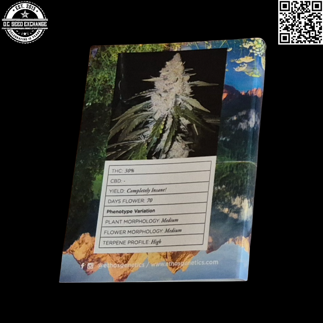 You are bidding on one rare original Ethos Genetics’ Zweet Inzanity F1 (Durban Poison x [Gorilla Glue #4 x Citral Skunk]) 6 Feminized Photoperiod Seeds pack!