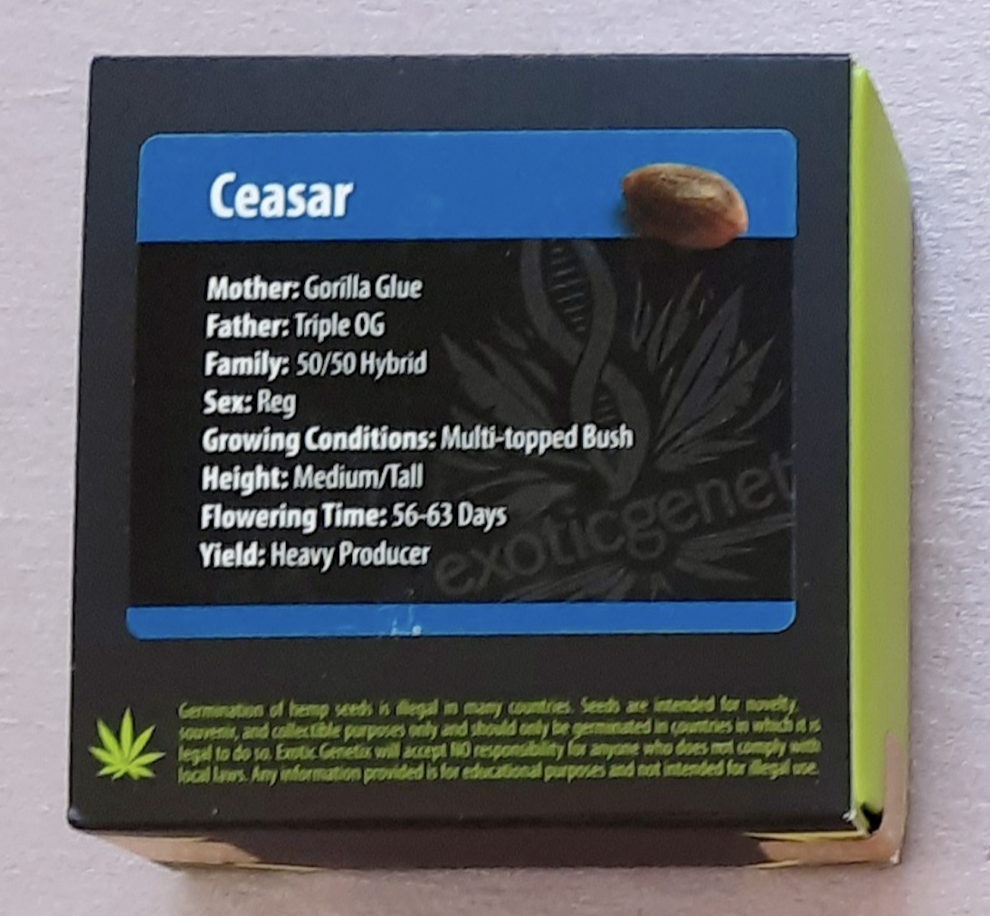 You are bidding on one rare retired Exotic Genetix Ceasar (Gorilla Glue x Triple OG) 10 Regular Photoperiod Seeds pack!