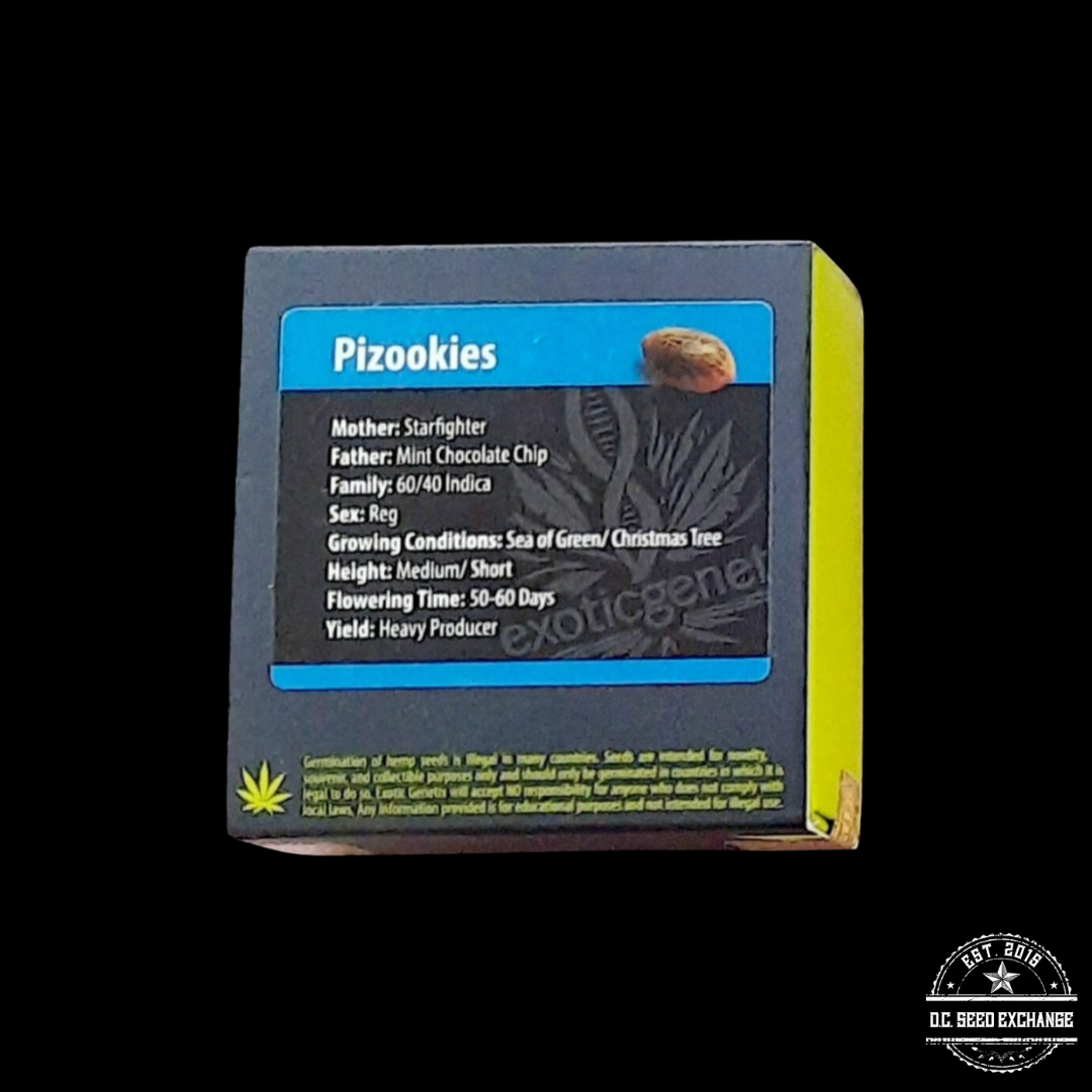 nPizookies is a relatively rare and unknown cannabis variety created by Exotic Genetix. This regular strain gives rise to male and female plants, and maintains a compact structure throughout the growing cycle.