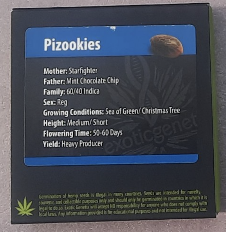 You are bidding on one pack of Exotic Genetix retired Pizookies (Starfighter x Mint Chocolate Chip) 10 Regular Photoperiod Seeds!