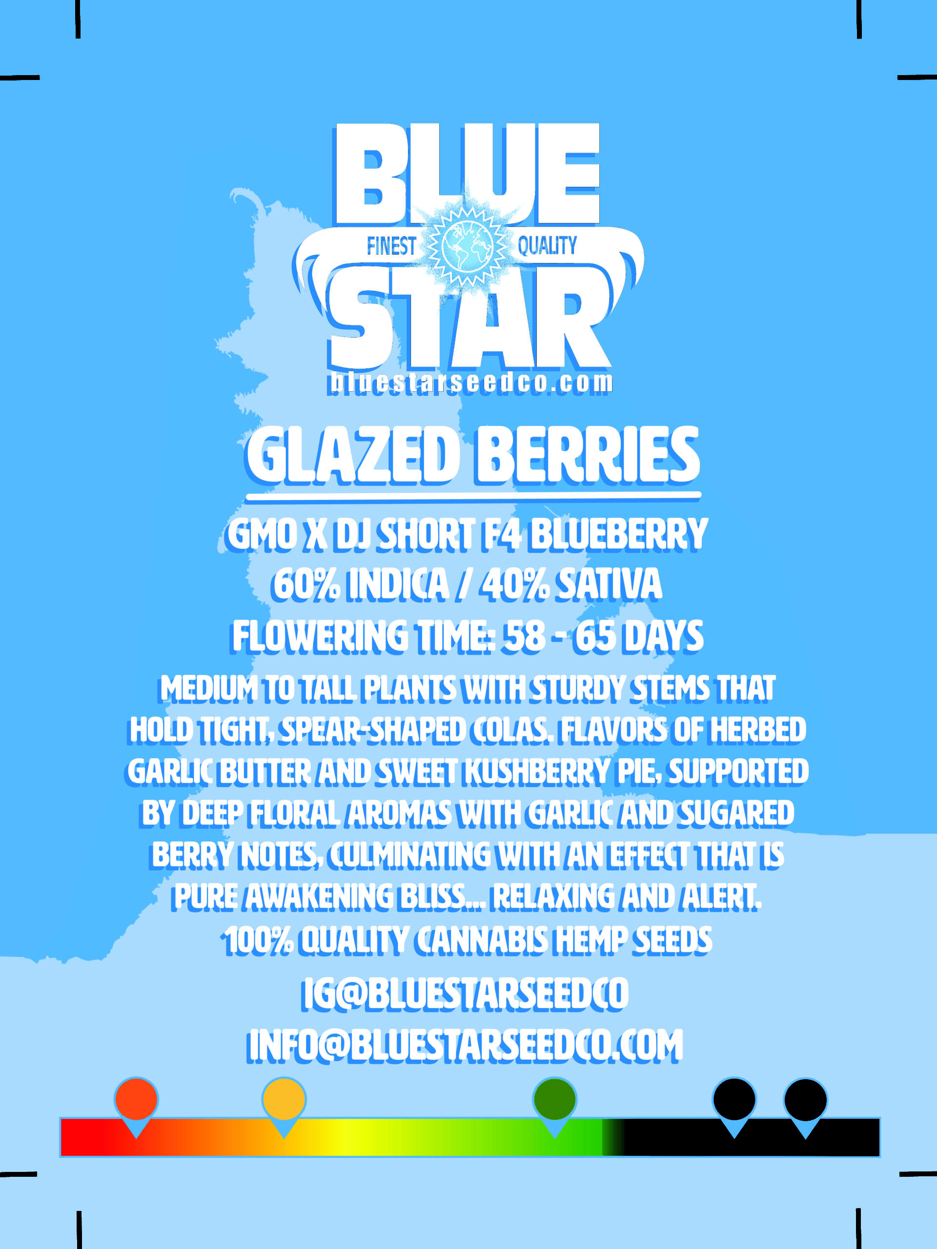 Medium to tall plants with sturdy stems that hold tight, spear-shaped colas. Flavors of herbed garlic butter and sweet kushberry pie, supported by deep floral aromas with garlic and sugared berry notes. Culminating with an effect that is pure awakening bliss… Relaxing yet alert.