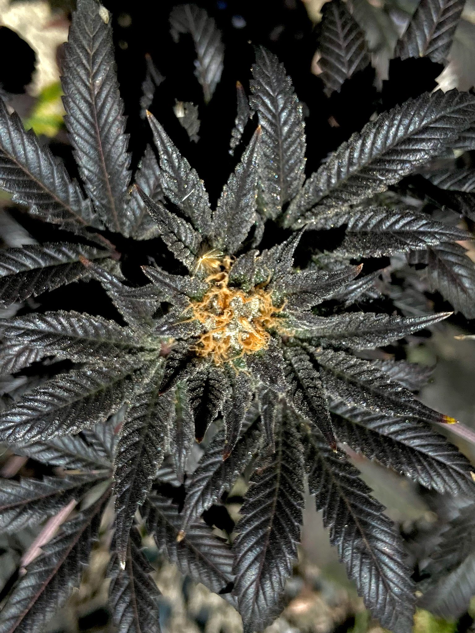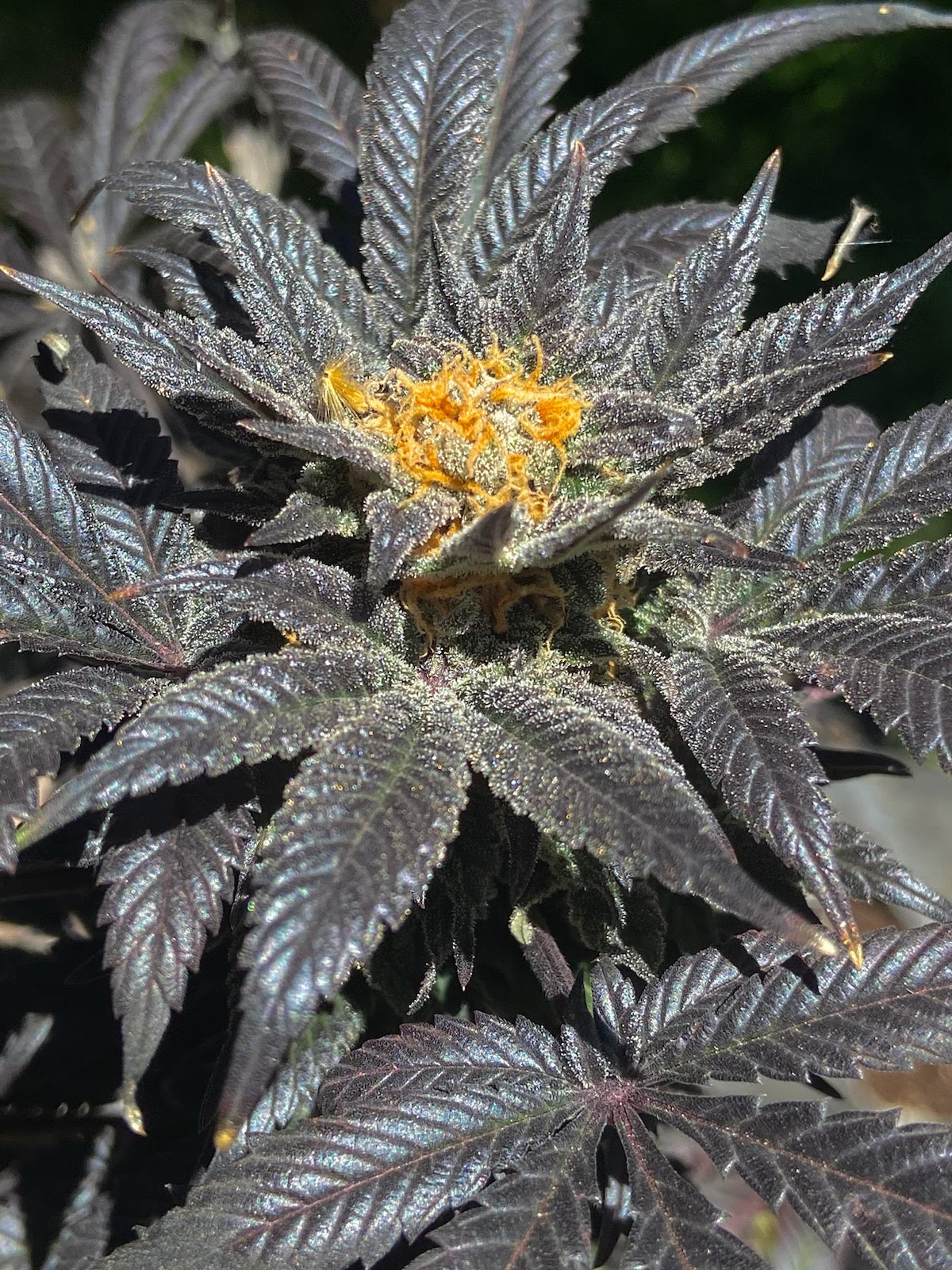 Some of the most purple plants GCG has ever seen. Almost black leaf. Bosinberry syrup aroma, tart berries. Buds have orange hairs similar to Grand Daddy Purps.