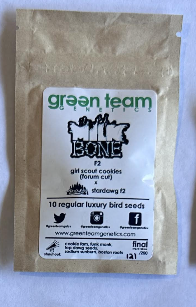 You are bidding on one rare limited Green Team Genetics Milk Bone F2 10 Regular Photoperiod Seeds pack!