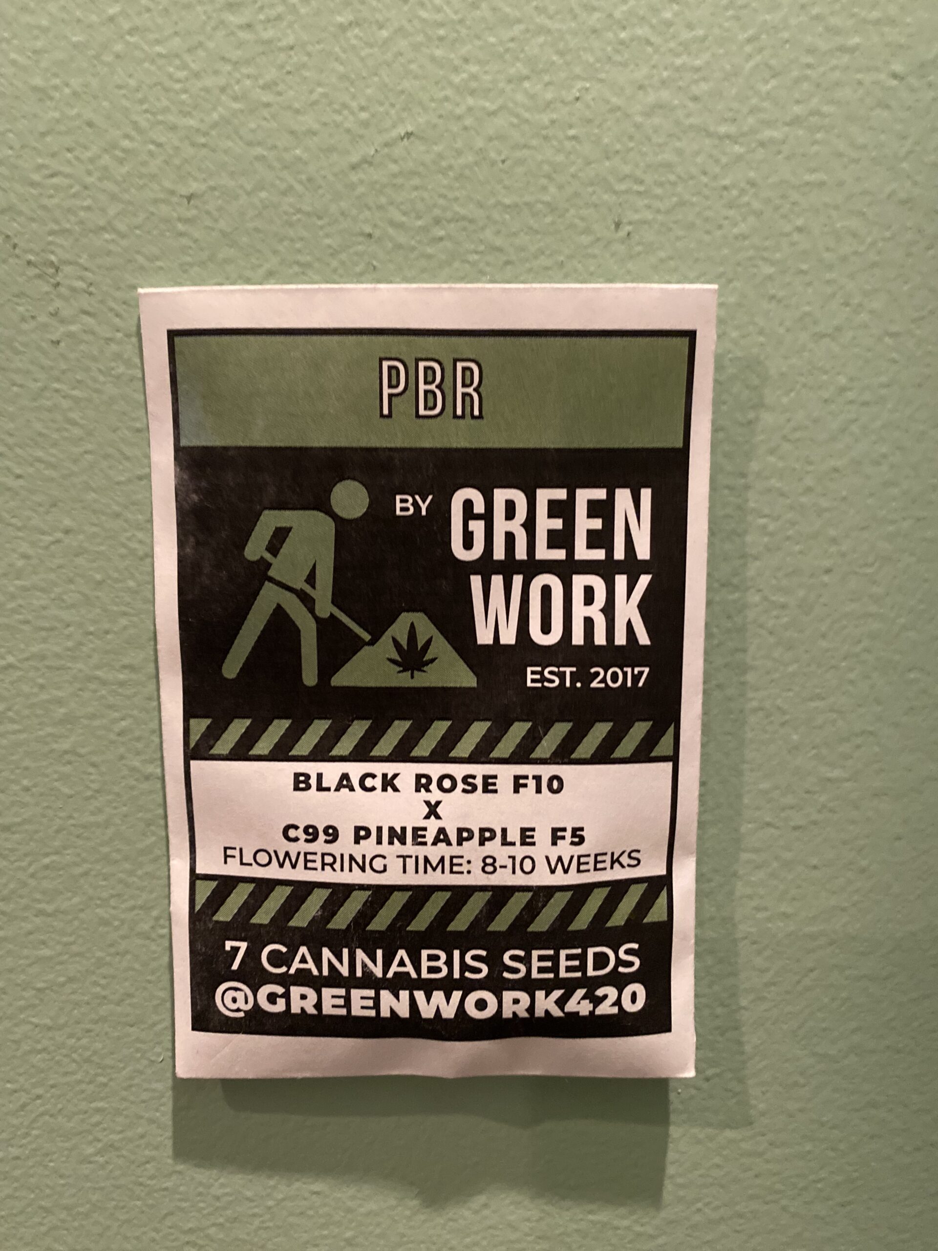 nYou are bidding on one pack of Green Work Collective’s retired Pineapple Black Rose F1 aka “PBR” 7 Regular Photoperiod Seeds!