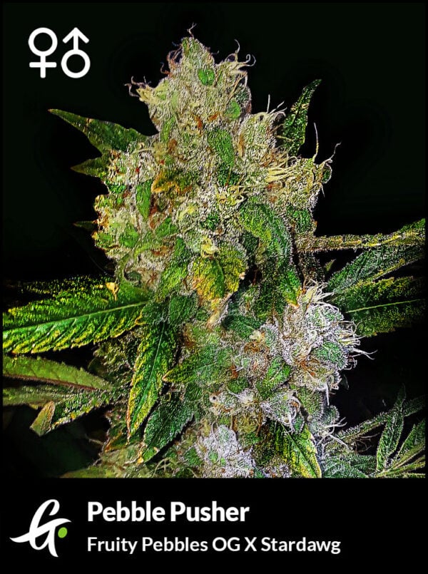 nThis delicious cannabis strain combines Fruity Pebbles OG and Stardawg, two strains known for their bold flavors and potent effects. You can expect a delectable taste and powerful high with the terpene-rich Pebble Pusher. With a big yield of fruity flowers come harvest time, growing Pebble Pusher is worth the effort. This sweet-and-funky hybrid strain’s supreme effects are beloved by all.