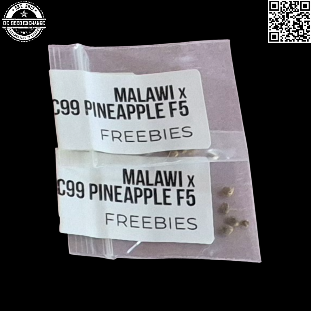 You are bidding on two Greenwork Collective Malawi x C99 Pineapple F5 5 Regular Photoperiod Seeds packs (10 seeds total)!