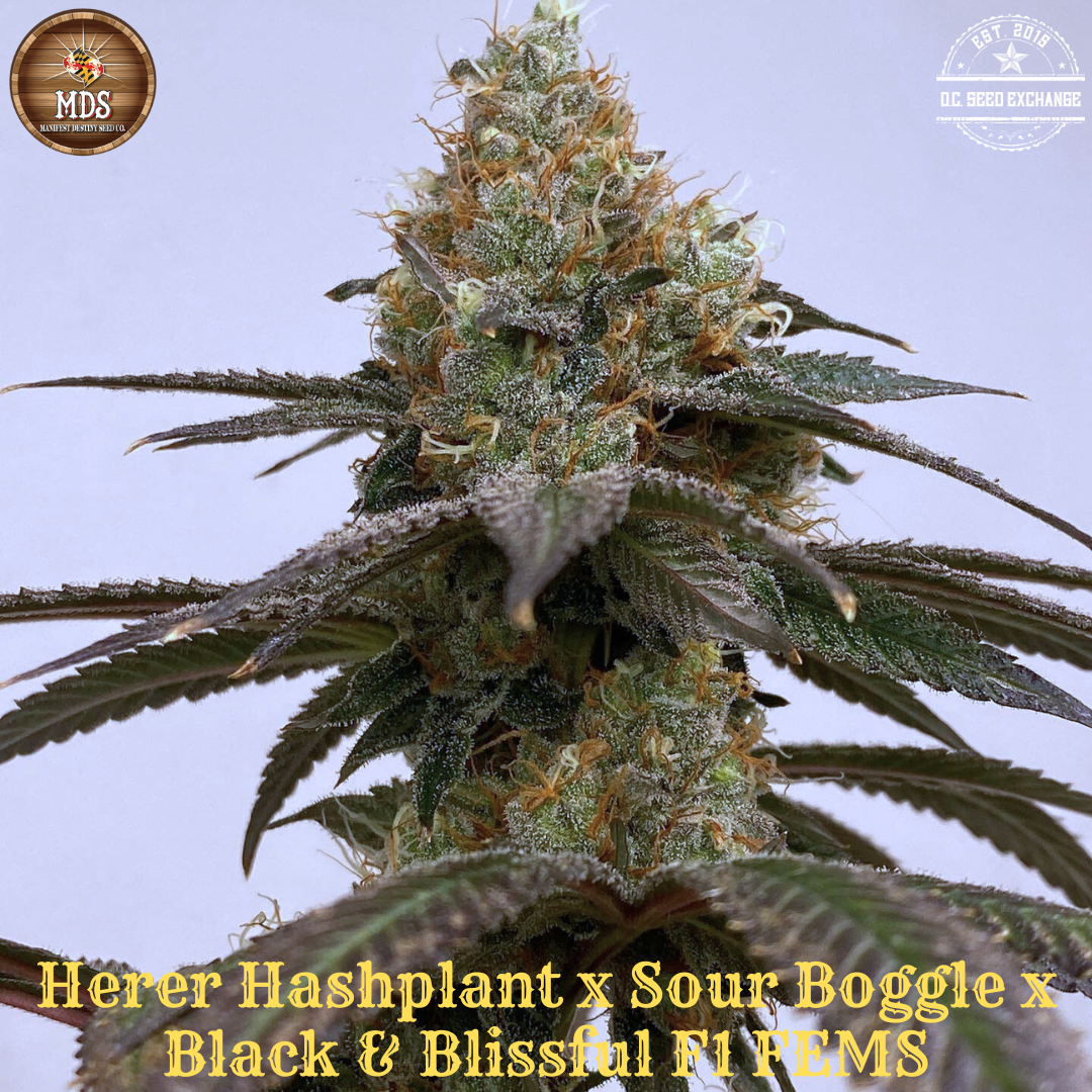 Manifest Destiny’s “Jack” Herer Hashplant x Sour Boggle crossed to a reversed Black & Blissful (Black Chem x Blissful Wizard).