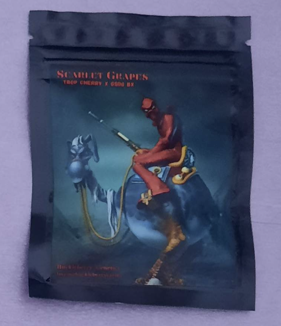 You are bidding on one rare pack of Huckleberry Genetics’ Scarlet Grapes F1 (Trop Cherry x Grape Stomper OG Bx) 5 Regular Photoperiod Seeds!