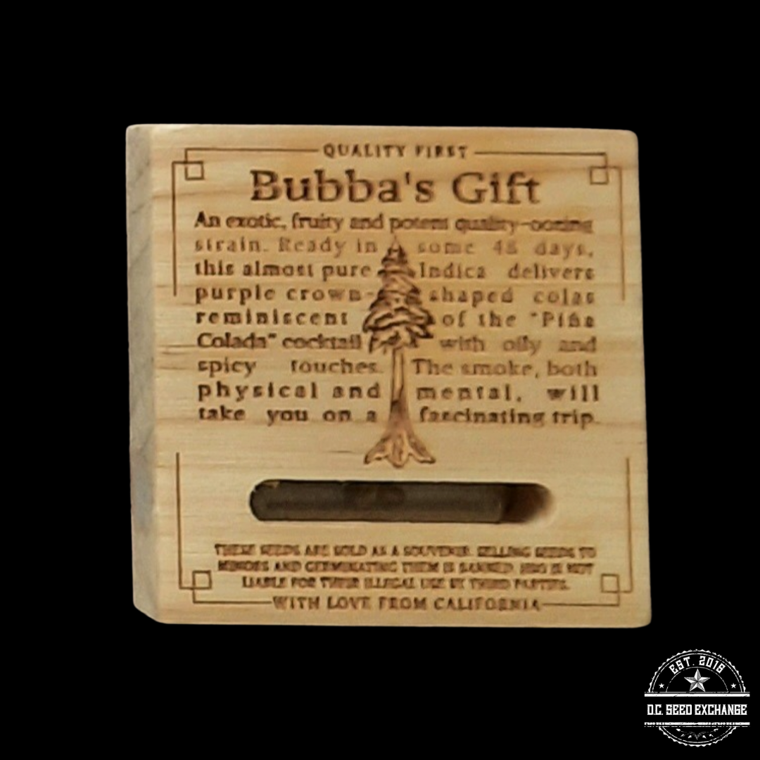 nBubba’s Gift by Humboldt Seed Organization is a feminized Indica-dominant cannabis strain that provides the possibility to cultivate one of the best Indica marijuana seeds available nowadays. If you buy Bubba’s Gift cannabis seeds, you will discover a highly perfumed strain which is a treat for the taste buds.