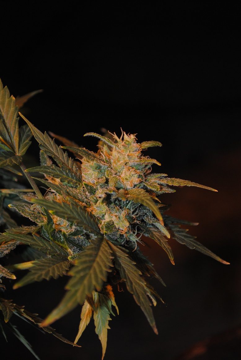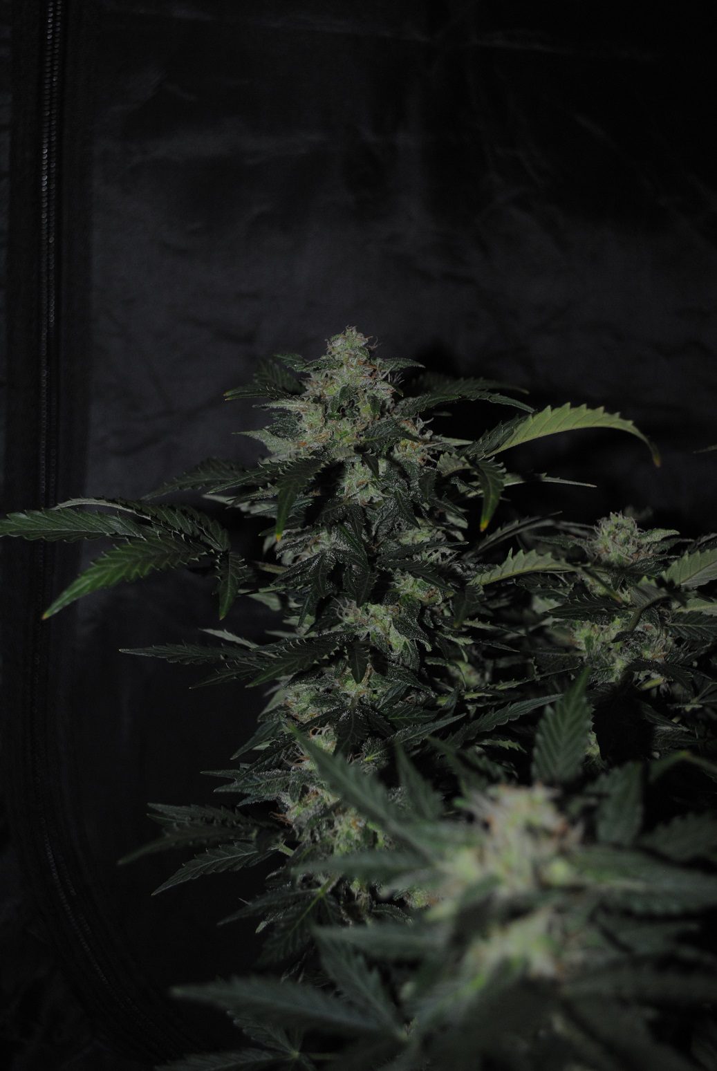 She is short in stature and can show color in some rogue phenotypes. Her side branching is as robust as her flowers that are covered in a nice layer of resin. She produces the best indoor and does well in the greenhouse and outdoor environment. Average height on these plants is 2-4 ft in an optimal environment, they are also great for a few plants in a small grow. The Jem will finish around 60-70 days from sprout, offering one of the quickest turnaround times between yields.