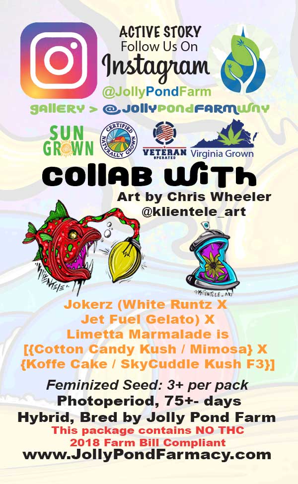 Jokerz Marmalade is a potent Hybrid cross bred by Jolly Pond Farms. This feminized variety brings the heat by combining the highly acclaimed Jokerz with the flavorful Limetta Marmalade.
