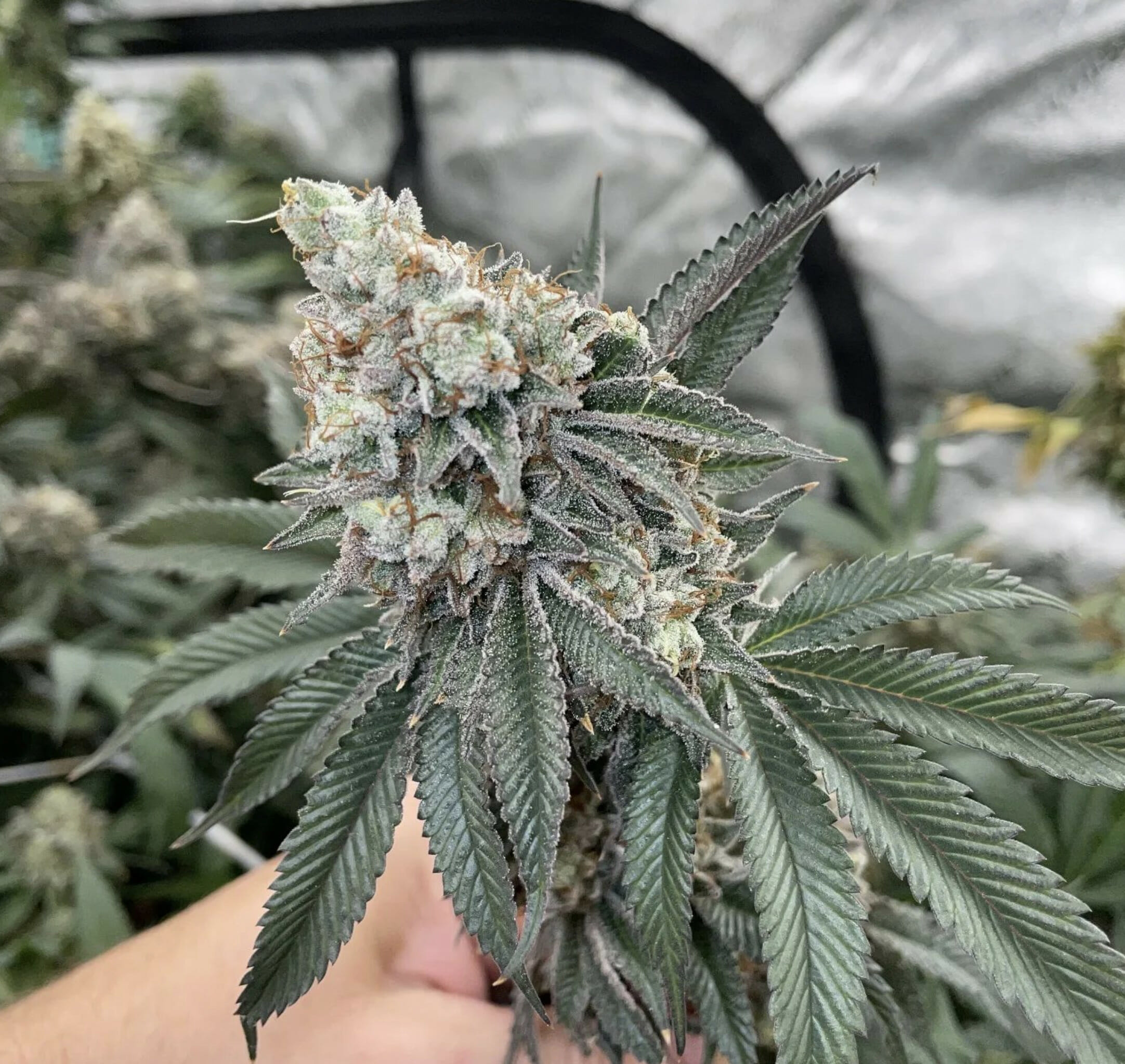 Hard-hitting, long-lasting, this is an old-school smoker’s smoke. Sweet, kushy diesel with notes of floral. Keeper phenos galore.