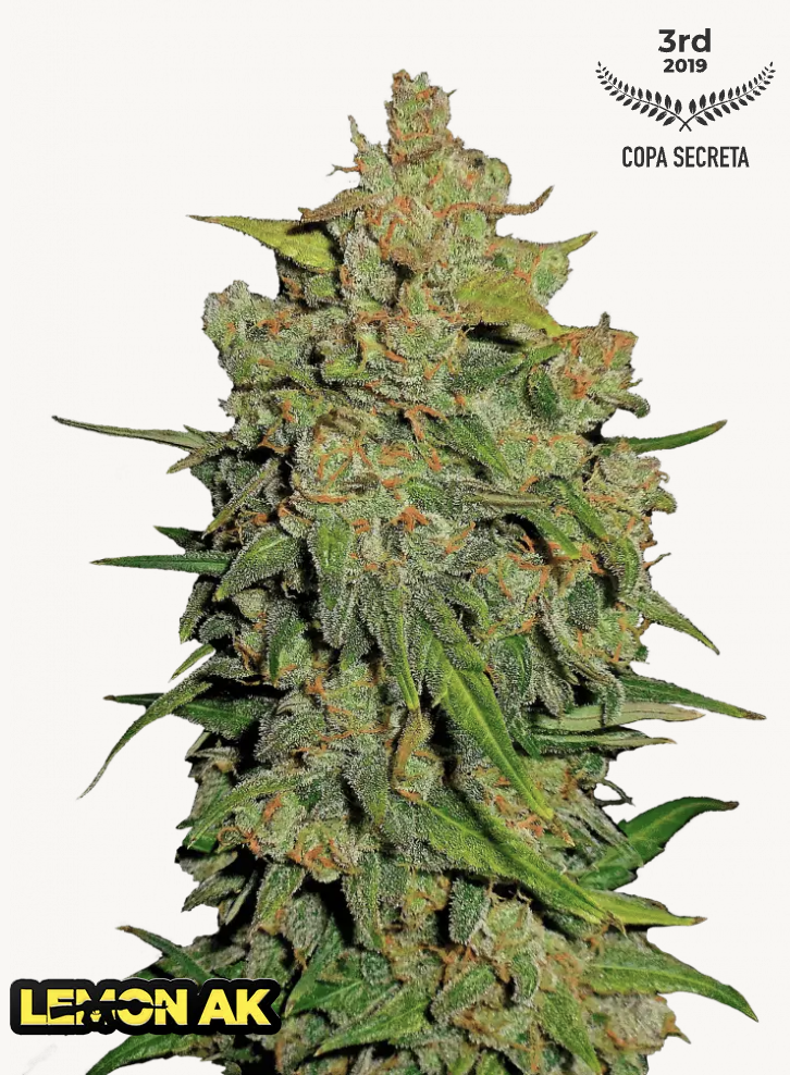 Lemon AK can grow anywhere between 70-100 cm, developing a large main cola and a few side branches. She’ll be a bushy stem the first few weeks but will resemble a frost-covered Christmas tree by the end of her cycle and may need some support to hold up her sturdy bud production. Despite being an autoflowering strain, her Sativa genetics could lead her to take a little bit longer to fully mature than some of our other genetics.
