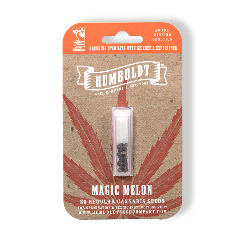 We tossed around naughty names for these gorgeous melons before settling on tame alliteration. It’s uncanny how the buds smell like a luscious honeydew or cantaloupe. Be ready to feel the magic when you take a Magic Melon toke, it hits hard and may bring out your inner philosopher. Large and productive plants. The entourage effect of the full-spectrum Cannabinoids may have great potential. Another variety to grab quickly as supplies are limited.