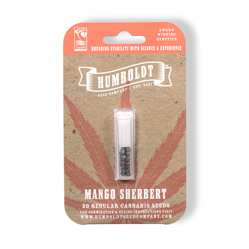 Mango & Sherbert must have been destined to meet at the HSC breeding facility in Eastern Humboldt. Our breeding coordinator is one of the best at pairing strains and we knew that the Mango Trees could work her magic while honoring the Sherbert’s smooth flavor and mellow sweetness. Expect much larger plants than the Sherbert cut covered in the fuzzy trichomes you are used to from the strain. Light green buds with orange hairs smelling like mango and sherbert with a hint of whip cream and strawberry on top.