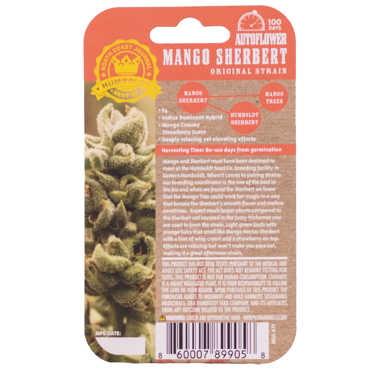 Mango & Sherbert must have been destined to meet at the HSC breeding facility in Eastern Humboldt. Our breeding coordinator is one of the best at pairing strains and we knew that the Mango Trees could work her magic while honoring the Sherbert’s smooth flavor and mellow sweetness. Expect much larger plants than the Sherbert cut covered in the fuzzy trichomes you are used to from the strain. Light green buds with orange hairs smelling like mango and sherbert with a hint of whip cream and strawberry on top. Effects are relaxing, making it a great afternoon strain.