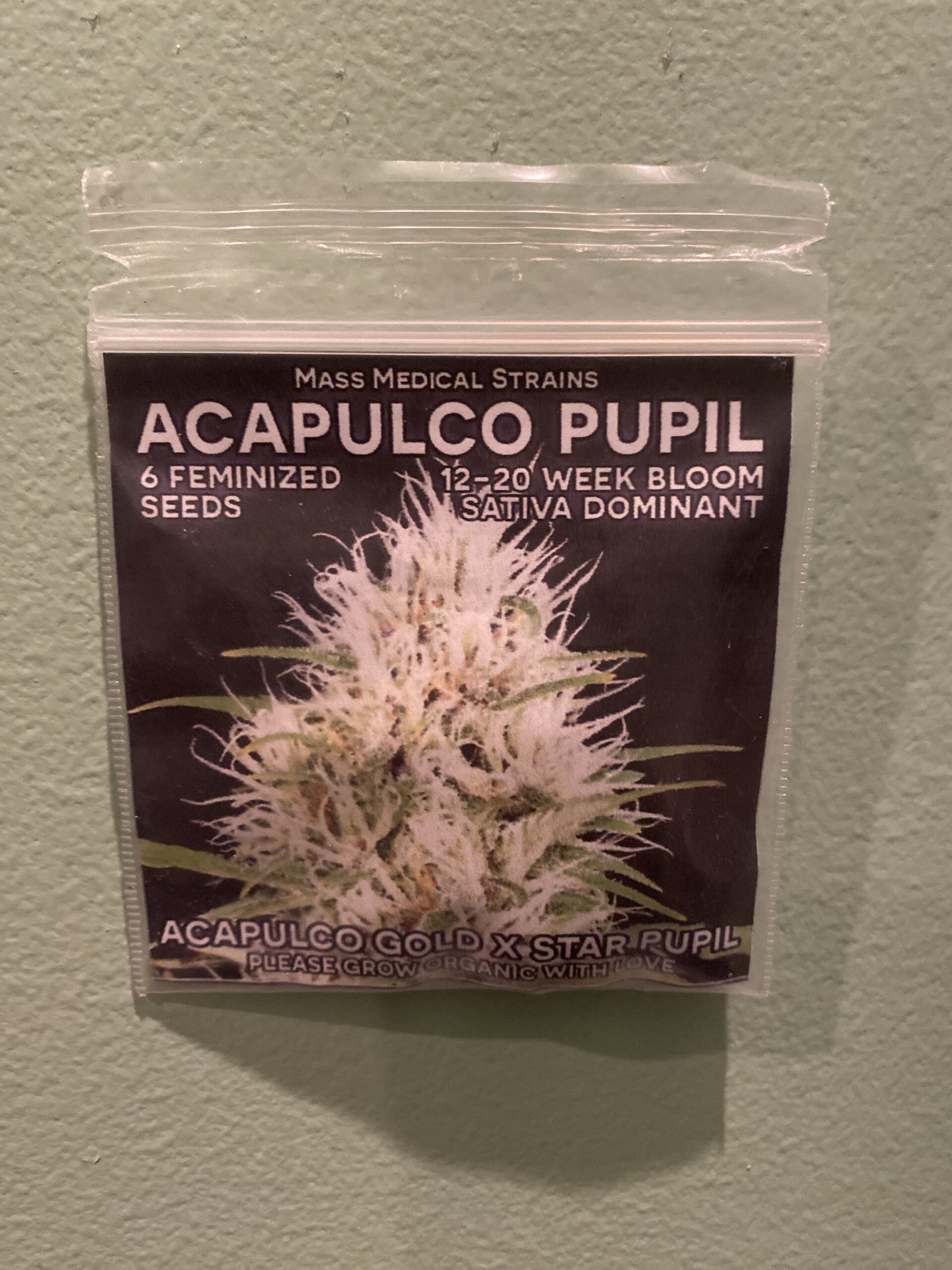 nYou are bidding on one pack of Mass Medical Strains’ Acapulco Pupil F1 (Acapulco Gold female via Bodhi seed stock, Antaguiar’s Selection x Star Pupil) 6 Feminized Photoperiod Seeds!