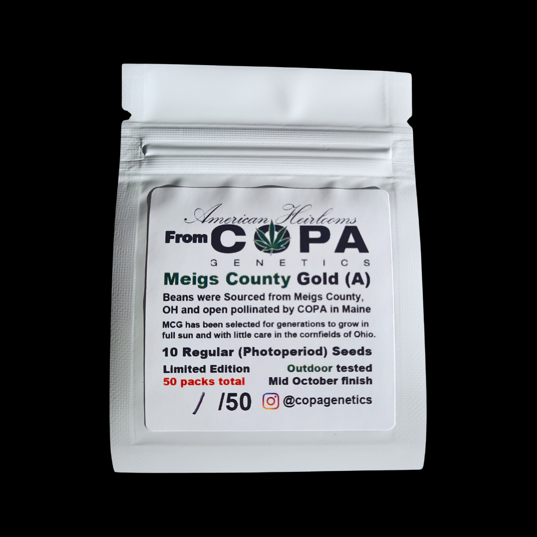 Copa Genetics’ Meigs County Gold seeds were sourced from Meigs County, Ohio, and open-pollinated by COPA in Maine.