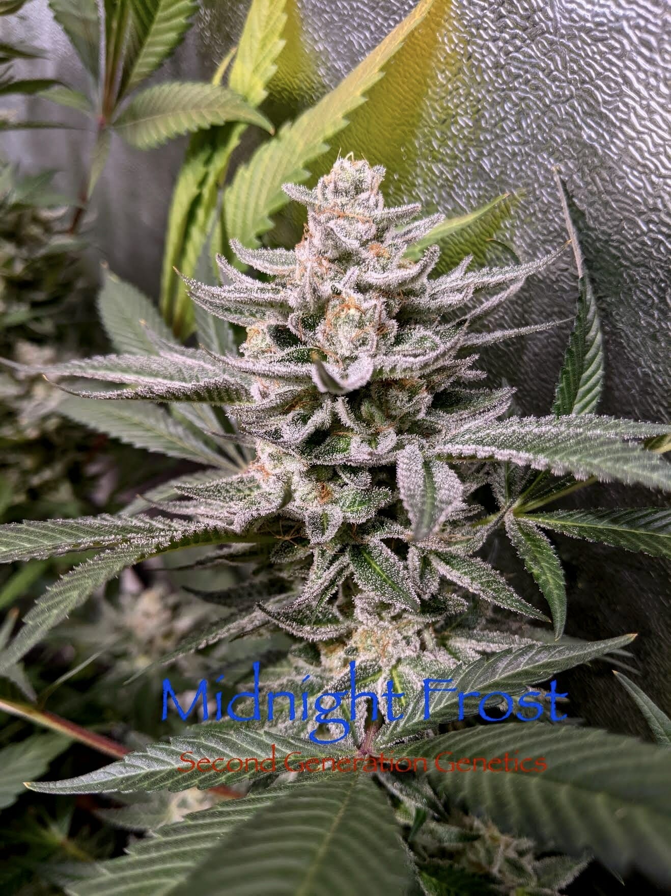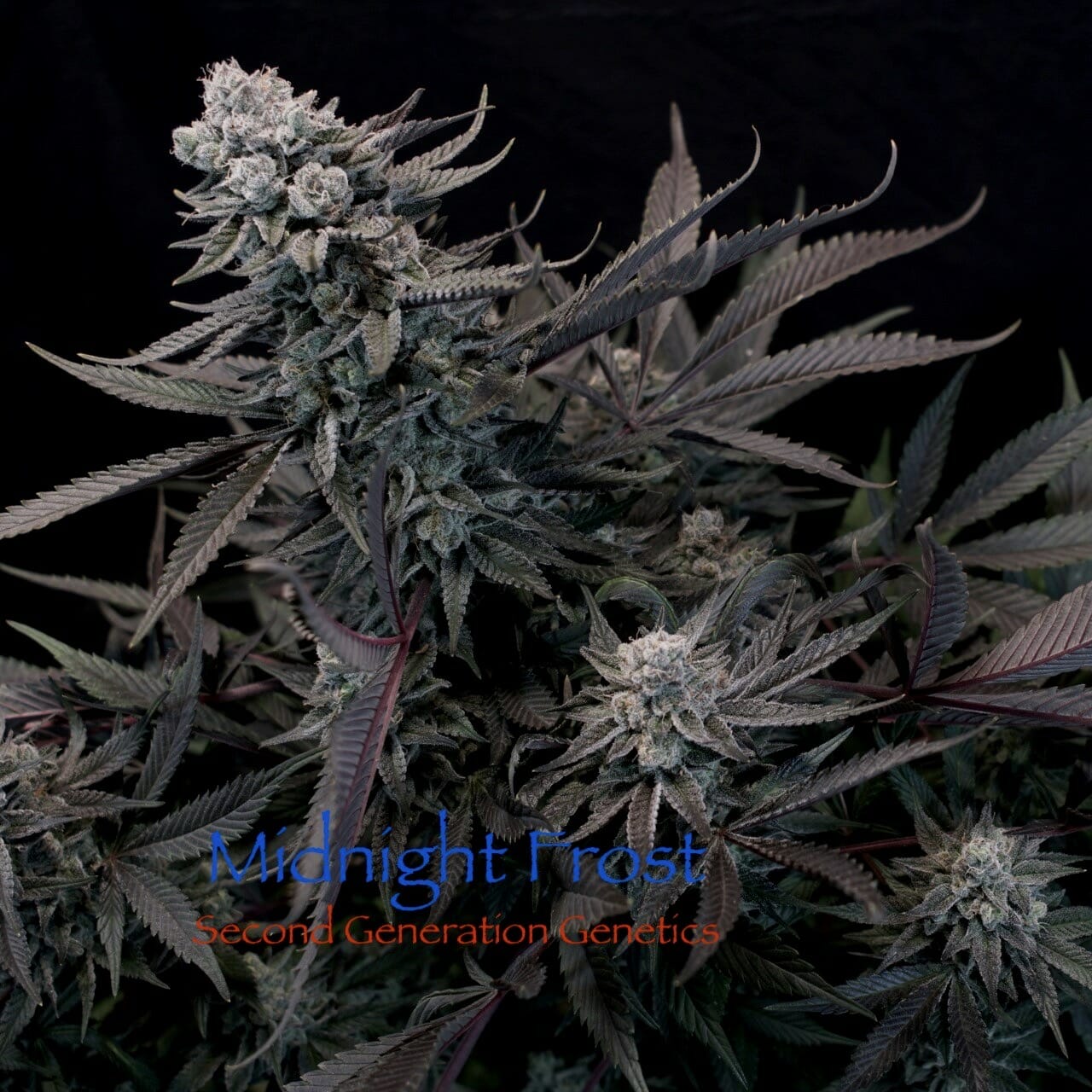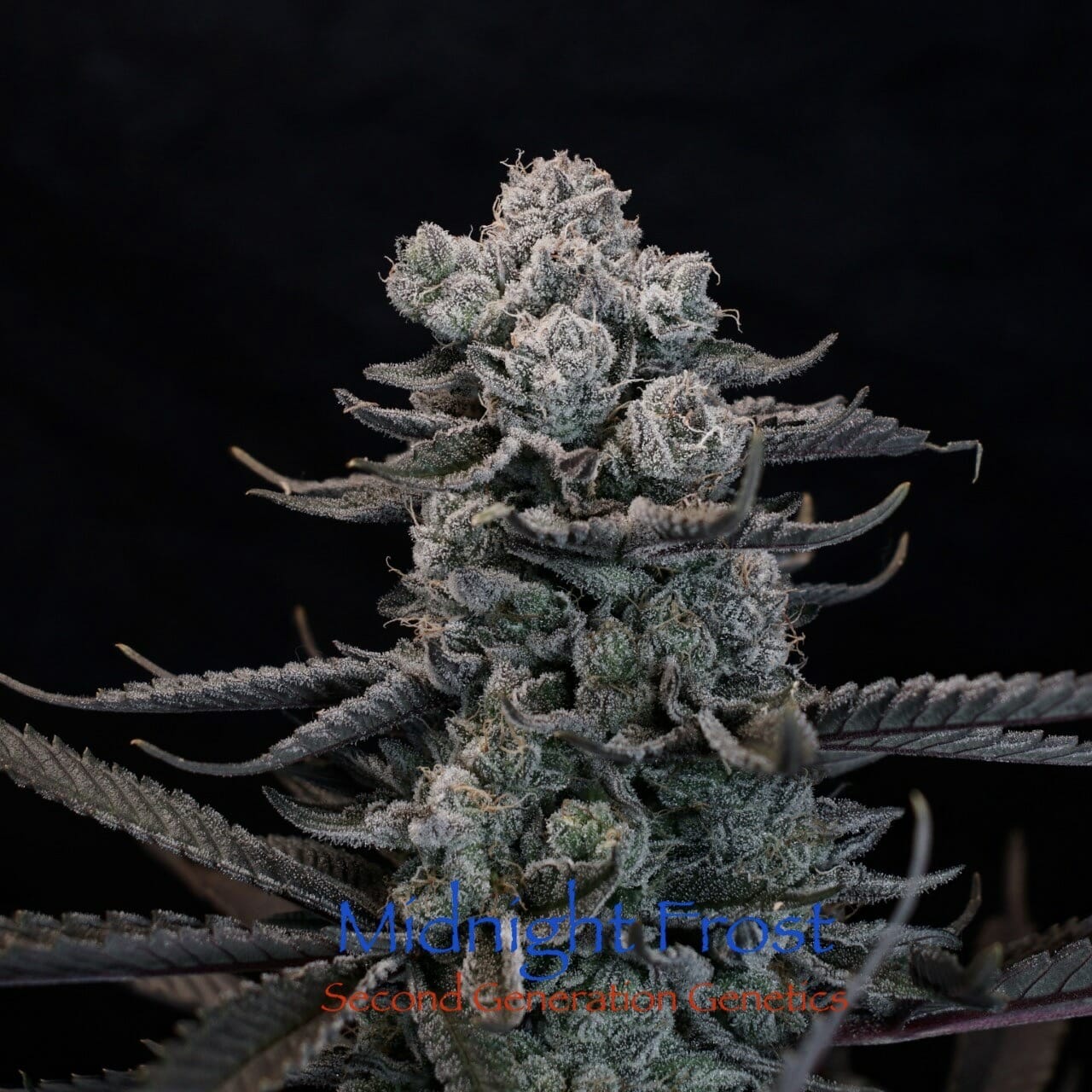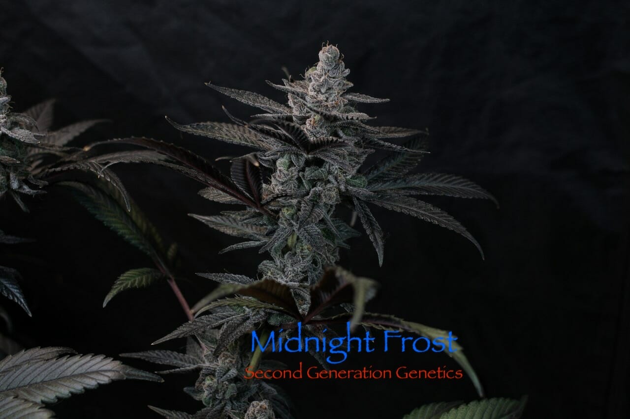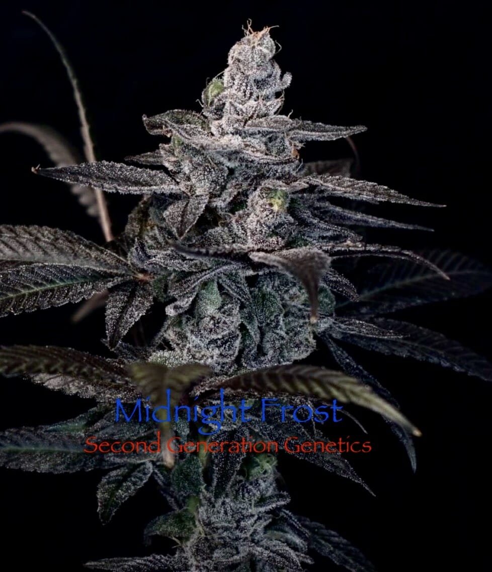 Production: Medium well. The Midnight Frost produces medium-sized buds of purple and dank kush floral buds covered in trichomes. She often produces tight flower clusters with pointed tops.