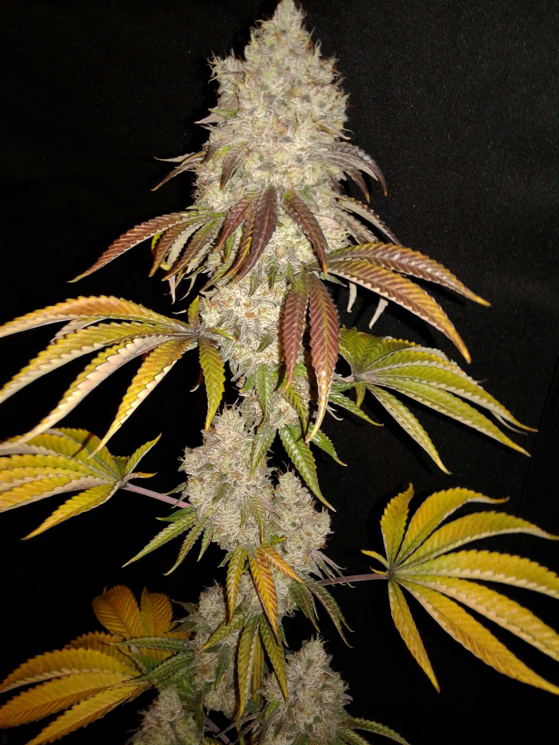 A plant that isn’t overly aggressive in veg, but will still reward you with many dense “golf ball” sized flowers of potent, unique herb covered in trichomes. Aromas and flavors will include fuel, coffee, & chocolate citrus zest. Mimosa dominant plants will express wider Indica fan leaves throughout the veg and tend to be slightly shorter plants.