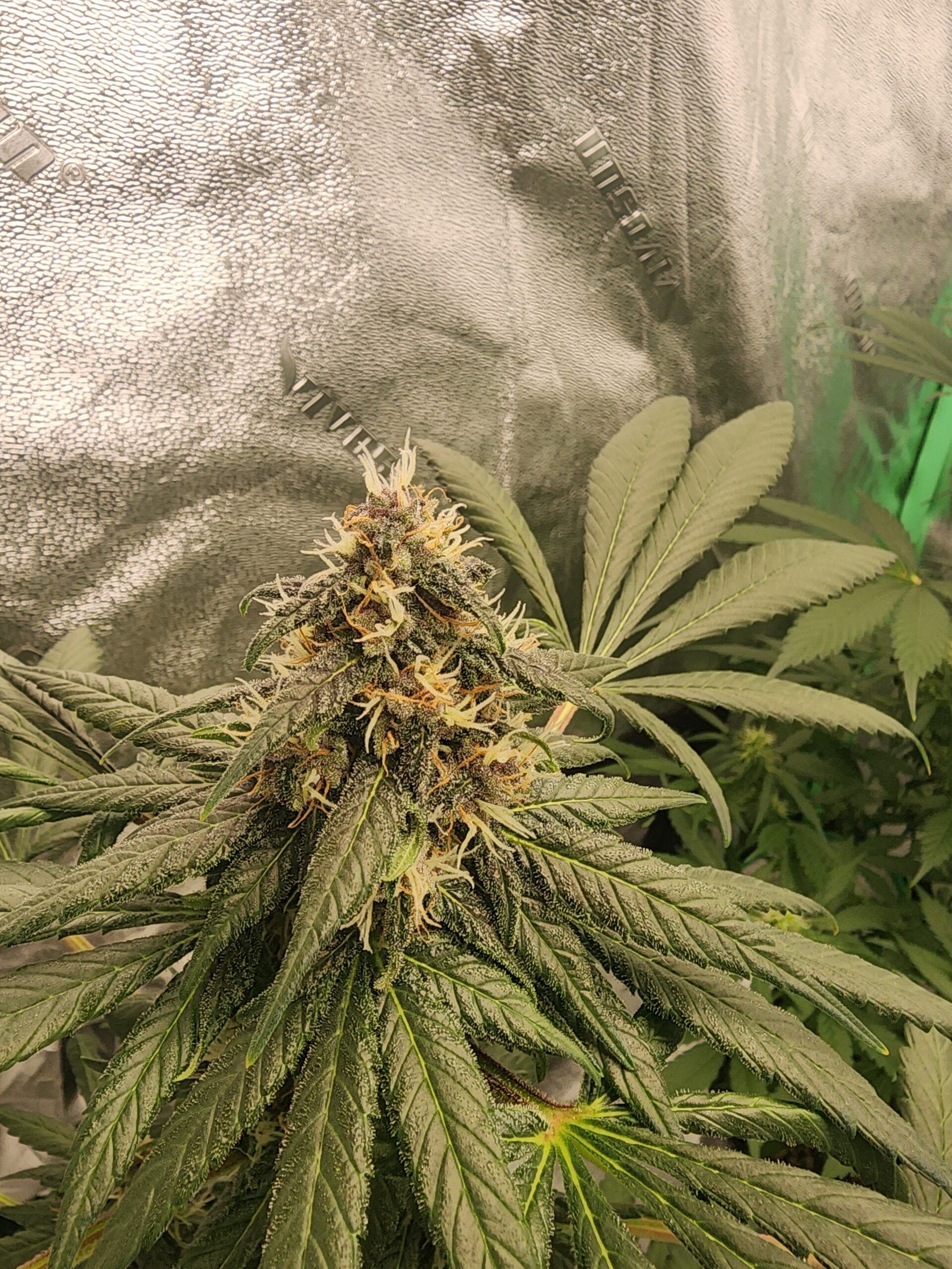 The first is a taller more open, Christmas tree structure and a shorter very very fat leaved, stocky indica dominant phenotype. The “indica” dominant pheno is more along the lines of what Dirty Worm was looking for. Spot on MOB in quite a few aspects. Ironically, this pheno takes longer to flower than the other, about 9-11 weeks. This pheno will thrive whether topped or not.