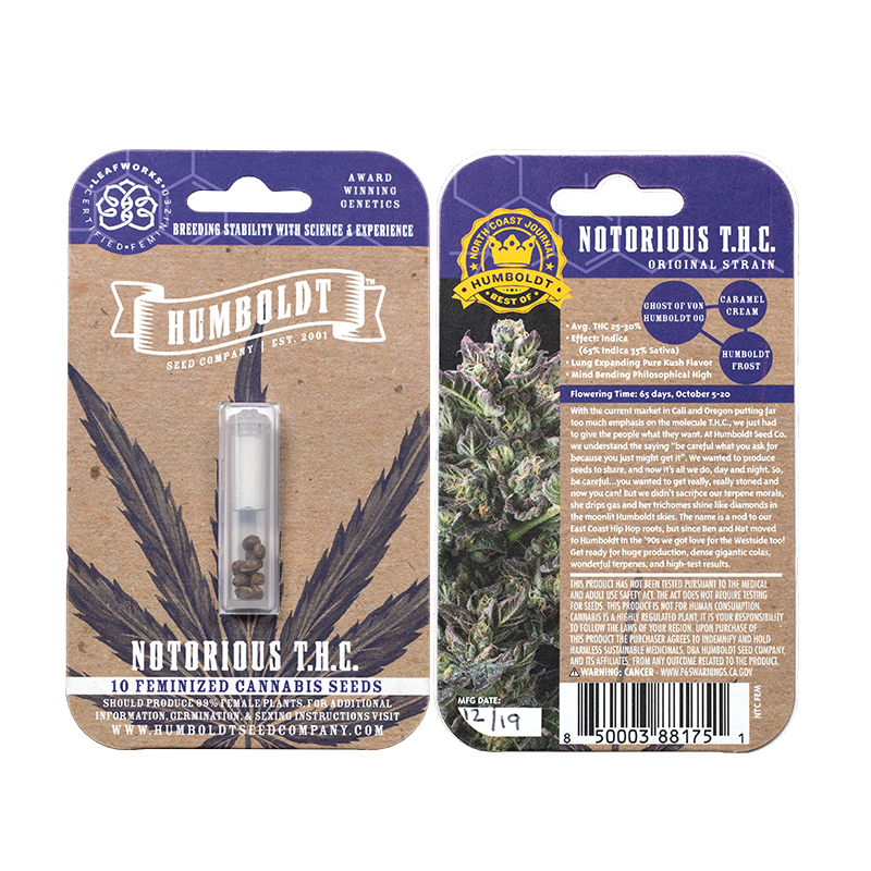 With the current market putting so much emphasis on potency we had to give the people what they want. But “be careful what you ask for because you just might get it.” We wanted to produce seeds to share, and now it’s all we do, all day and night. So be careful… you wanted to get really stoned, and now you can! We didn’t sacrifice the terpenes, she drips gas and her trichomes shine like diamonds in the moonlit Humboldt skies. Get ready for huge production, dense gigantic colas, and wonderful terpenes.