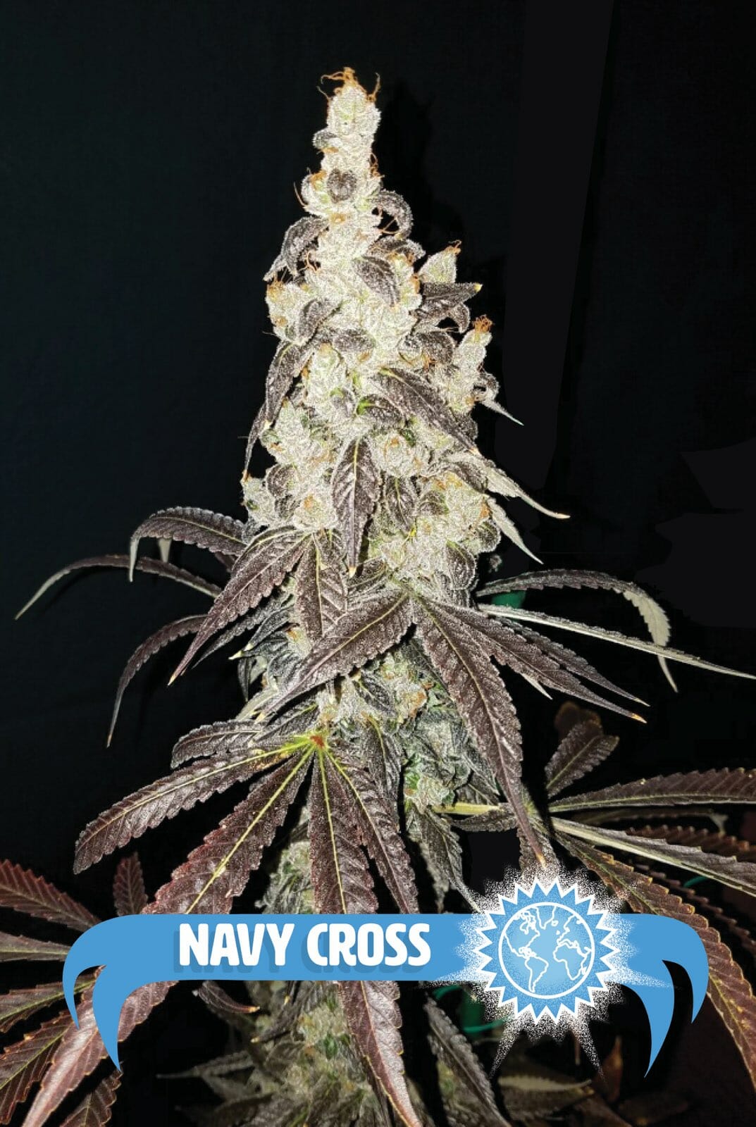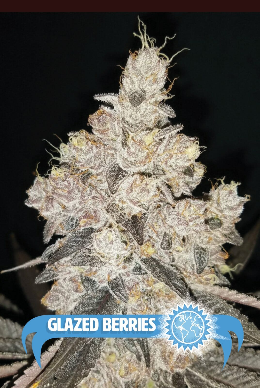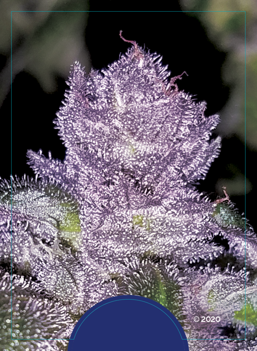 A Hybrid cross sporting structural growth patterns of both medium-stretch Indica to short-squat Kush phenotypes, 75% tested with deep-purple, tight-clustered bud sets and approx. 25% developing full cola formations. The stretch phenos, like the mother, are of tropical fruit/tutti-fruity, cherry, and sweet tea while the Kush phenos are more dank musky forest berry along with tart dry burgundy, grape, and leather aromas. Flavors of juicy-fruit gum, blueberries, cherries, and nutmeg are apparent. The effect is elated and powerful yet clear-headed and focused, motivational and inspirational, energizing and long-lasting were noted in the test smokes. These are a one-time-only exclusive release as the mother used has passed. Done as a joint project with Blue-Star Seed Co.
