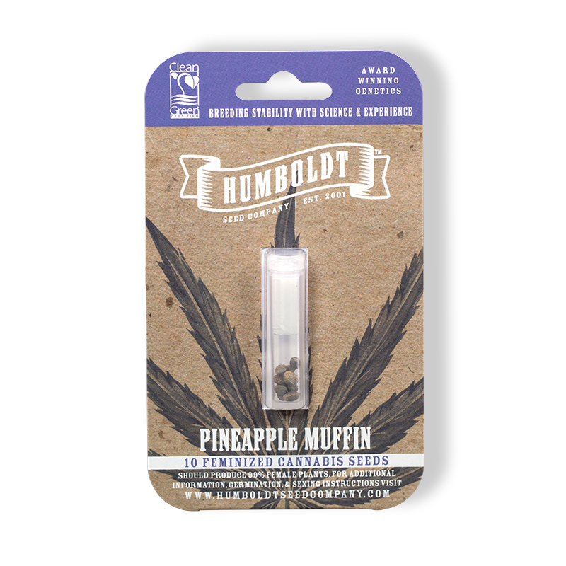 This signature cross between some of HSC’s favorite strains, Pineapple Train Wreck and Blueberry Muffin, offers the best of both plants. Pineapple Muffin produces vigorous, mold-resistant, plants that grow wide and tall. The dense buds are bright green with purple flaking. The sweet blueberry scent is highlighted by pineapple, creating a delicious smoke that tastes just like pineapple upside-down cake. The sweet flavor may leave you relaxed and productive.